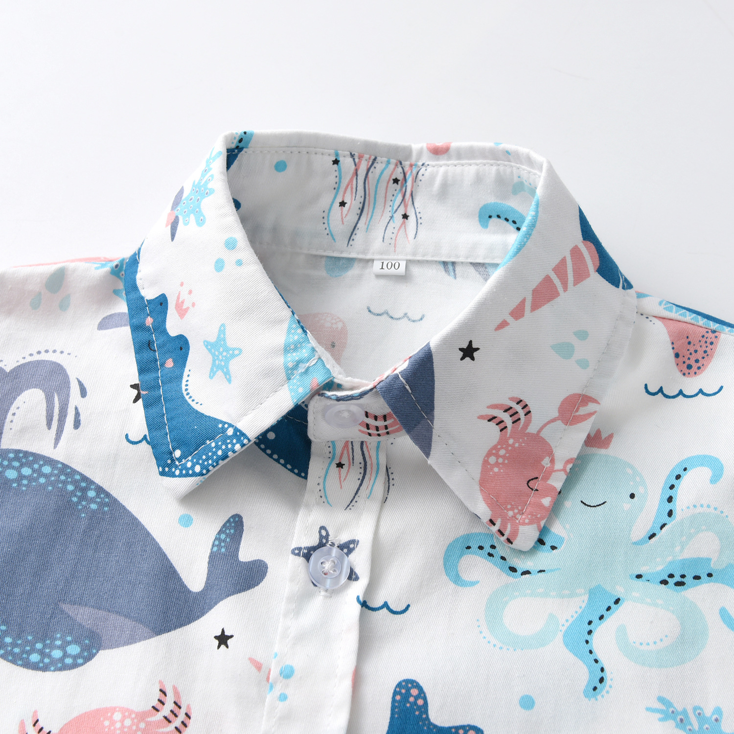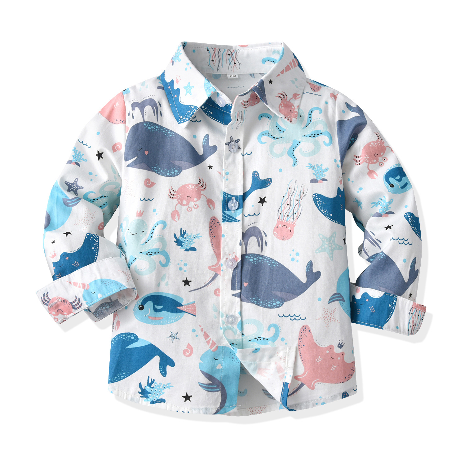 Cross-border Autumn Boys' Long-sleeved Shirt Children's Baby Printed Cartoon Casual Cardigan Dress Top for Outer Wear
