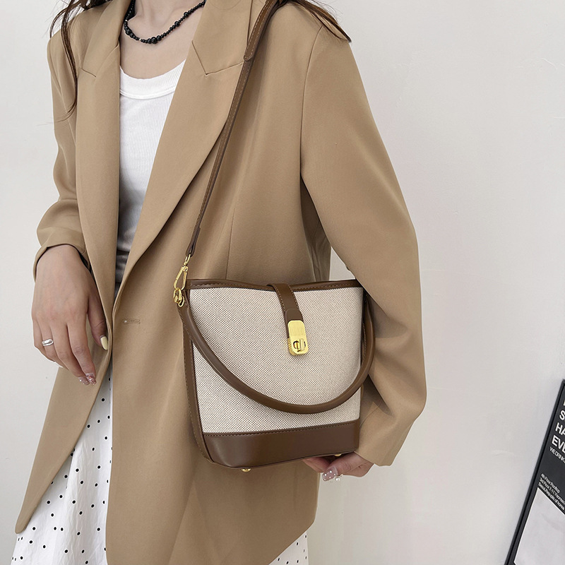| nameOriginal | Cross-border Bag Women's 2024 New Fashionable Portable Bucket Bag Niche Design Contrast Color Stitching Shoulder Crossbody Bag |