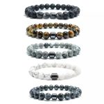 Cross-border beaded bracelet Amazon wish Tiger Eye volcanic stone map stone 8mm Bracelet Men’s magnet bracelet