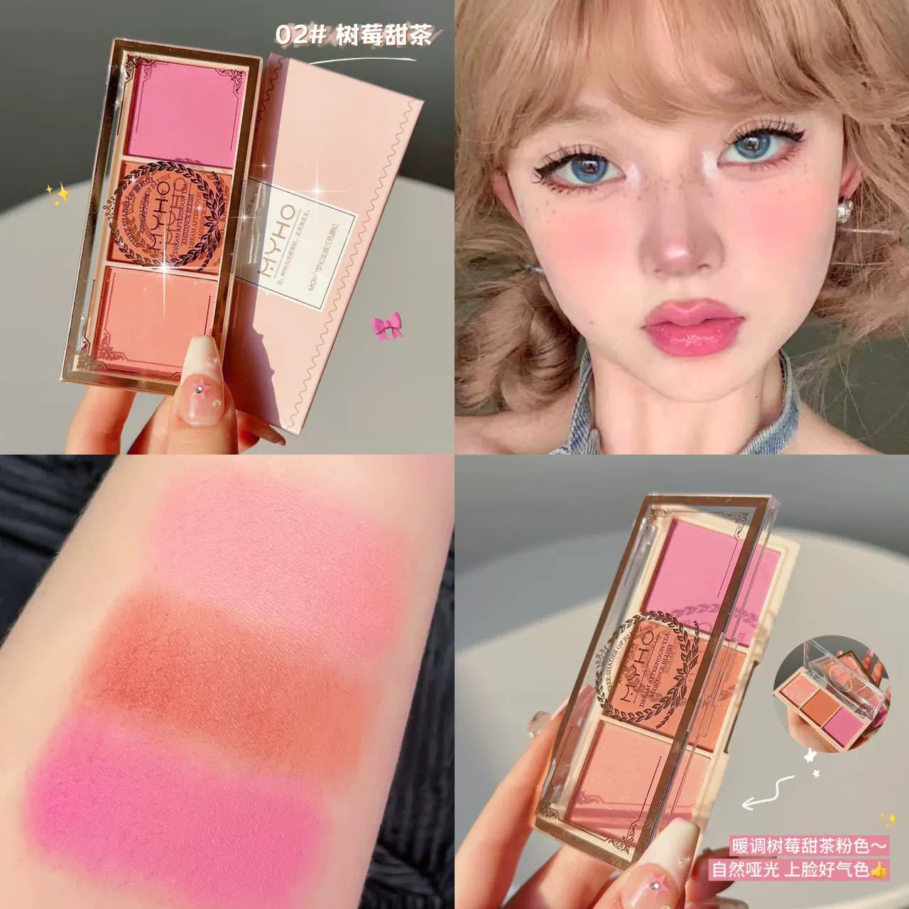 | nameOriginal | Cross-border beauty afternoon tea three-color blush palette women's eye shadow red nude makeup genuine natural purple orange powder roasted milk tea color |