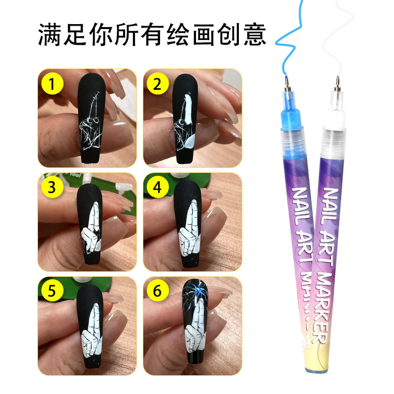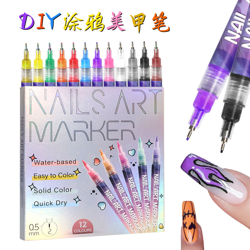 Cross-border Best Selling Nail Art Graffiti Pen 12 Color Acrylic Paint Pen Nail Drawing DIY Quick-drying Point Flower Gouline Pen