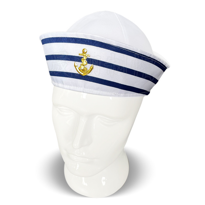 | nameOriginal | Cross-border blue and white striped sailor hat dome flanging brimless full sealing Amazon striped navy sailor hat wholesale |