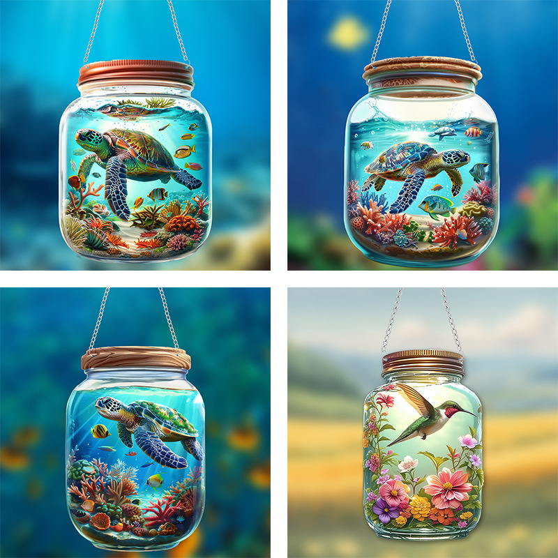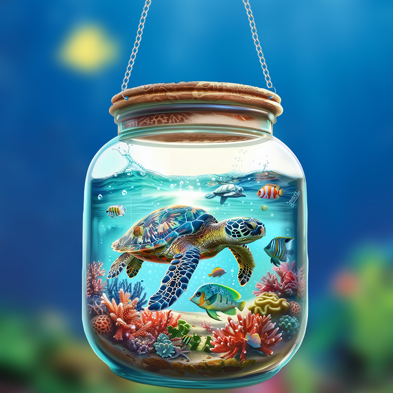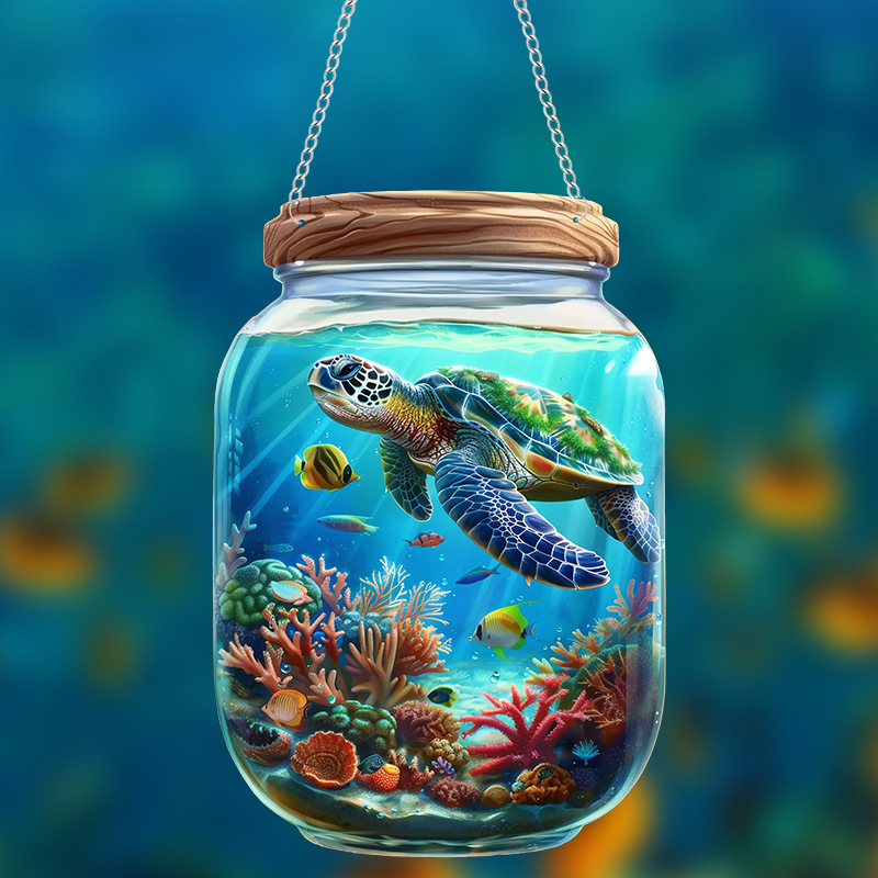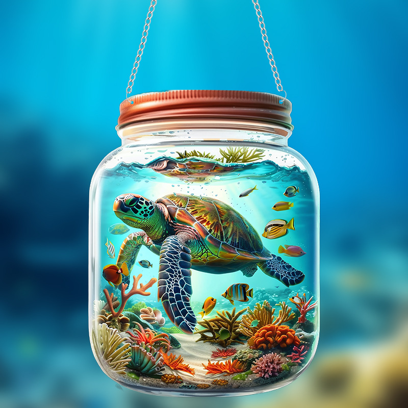 Cross Border Bottle Dyeing Christmas Acrylic Blue Ocean Turtle Outdoor Decorative Listing Window Hanging Decorations