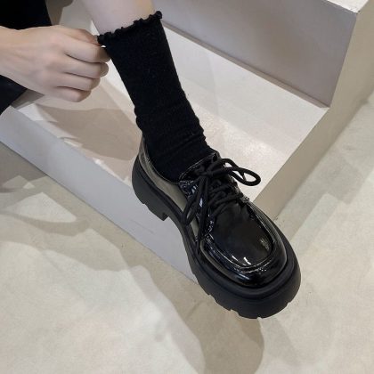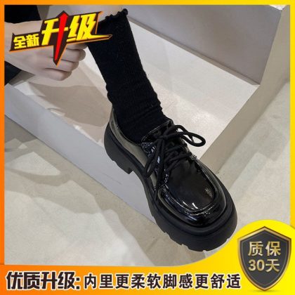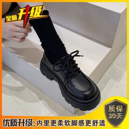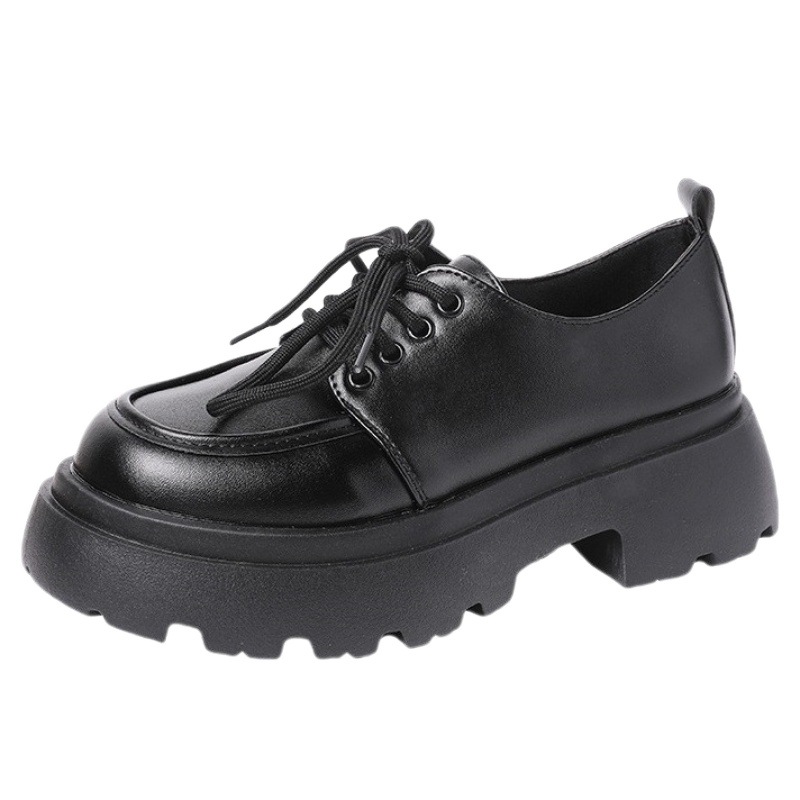 Cross-border British Style Thick-soled Small Leather Shoes for Women 2023 New Spring Versatile Black jk Flats Platform Loafers In