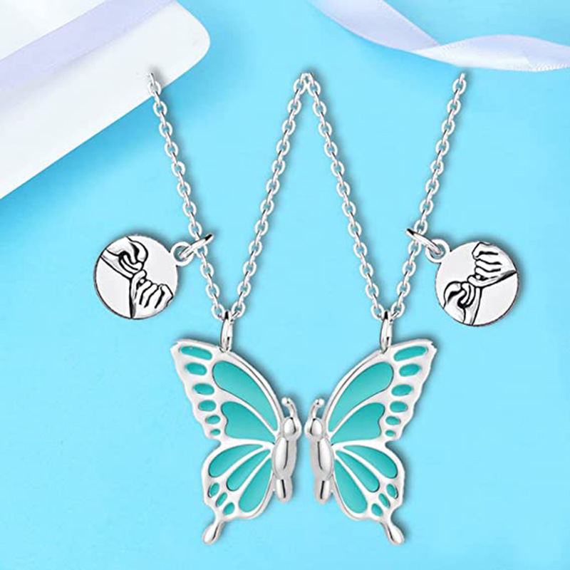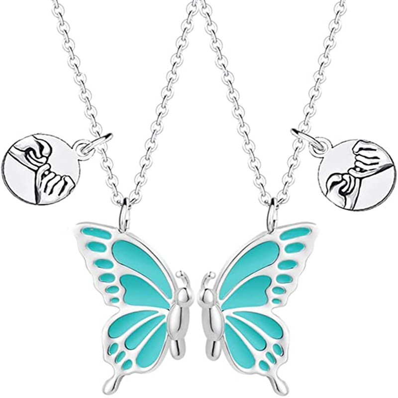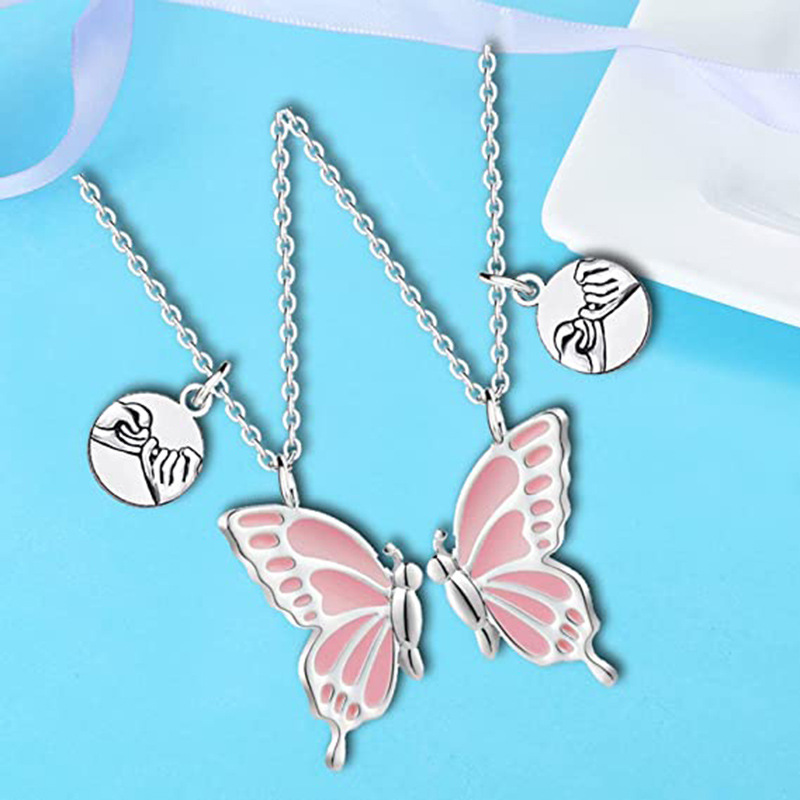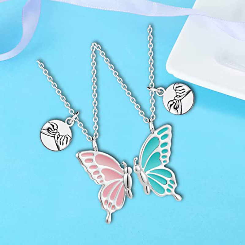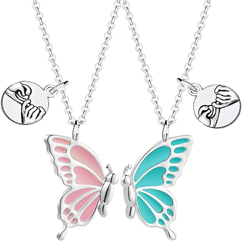 Cross-border Butterfly oil drop wish Butterfly BFF Necklaces clavicle chain bff good friend necklace