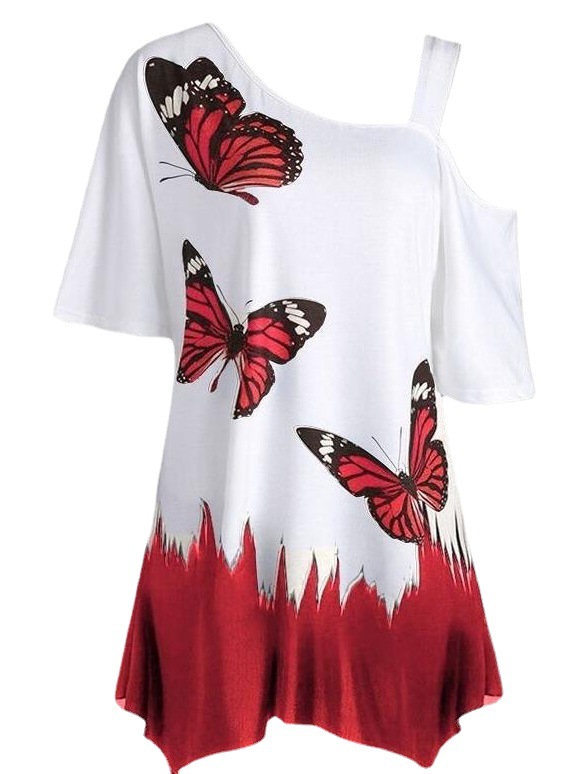 | nameOriginal | Cross-border casual short-sleeved women's clothing 2023 Summer AliExpress WISH foreign trade printed butterfly shoulder long T-shirt for women |