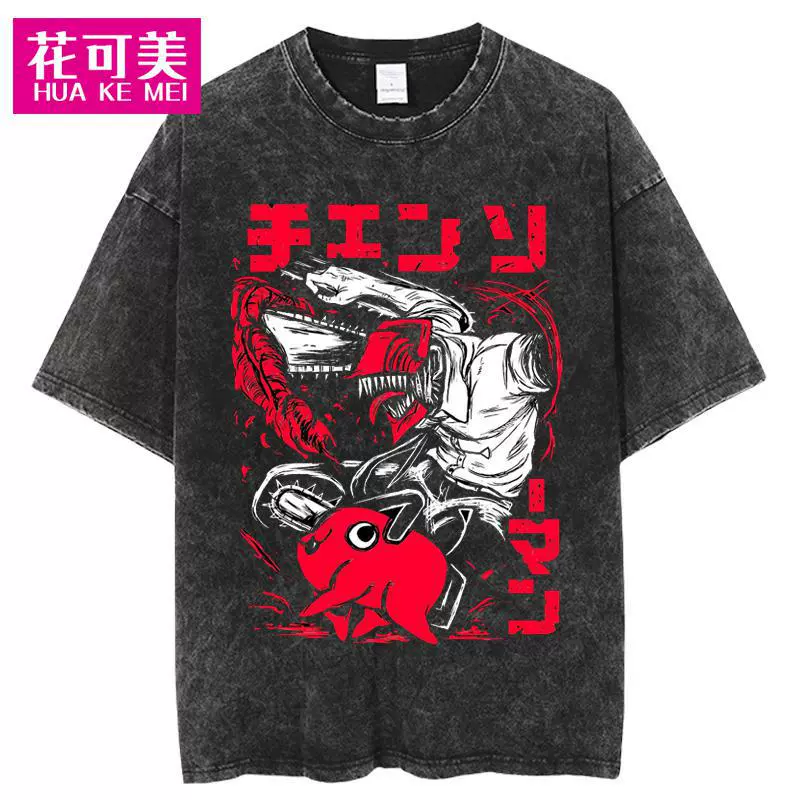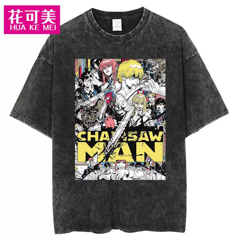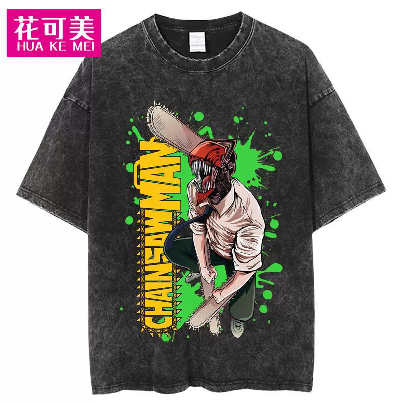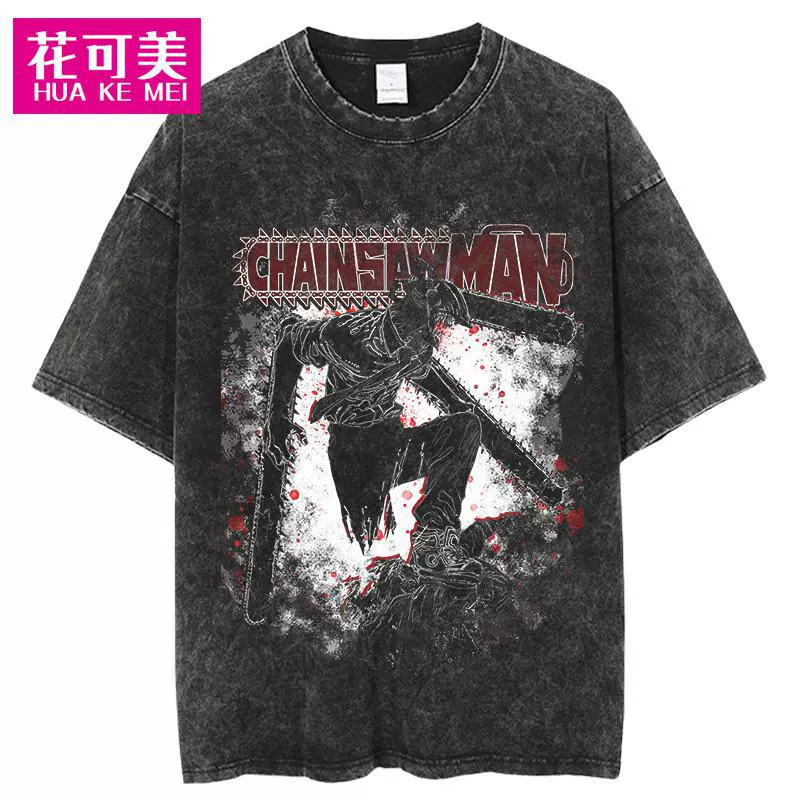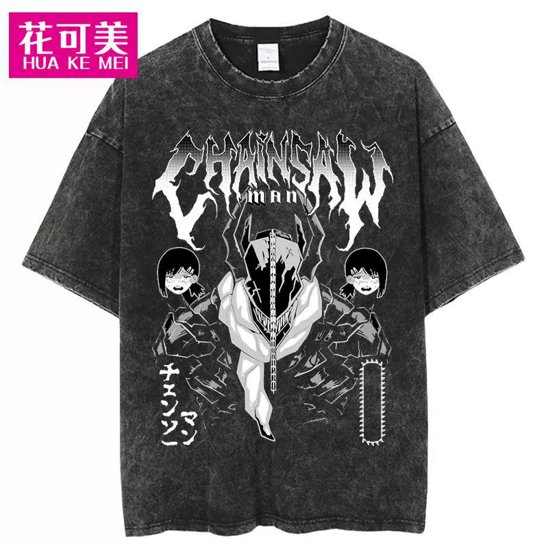 | nameOriginal | Cross-border Chainsaw man men's hip-hop retro washed large anime T-shirt women's street cotton T-shirt |