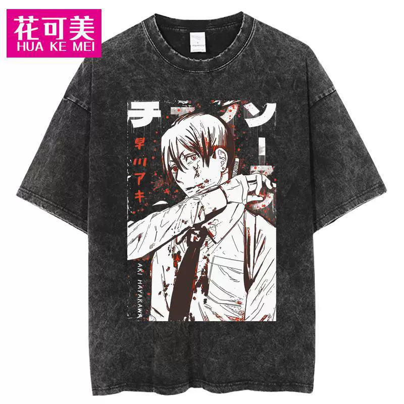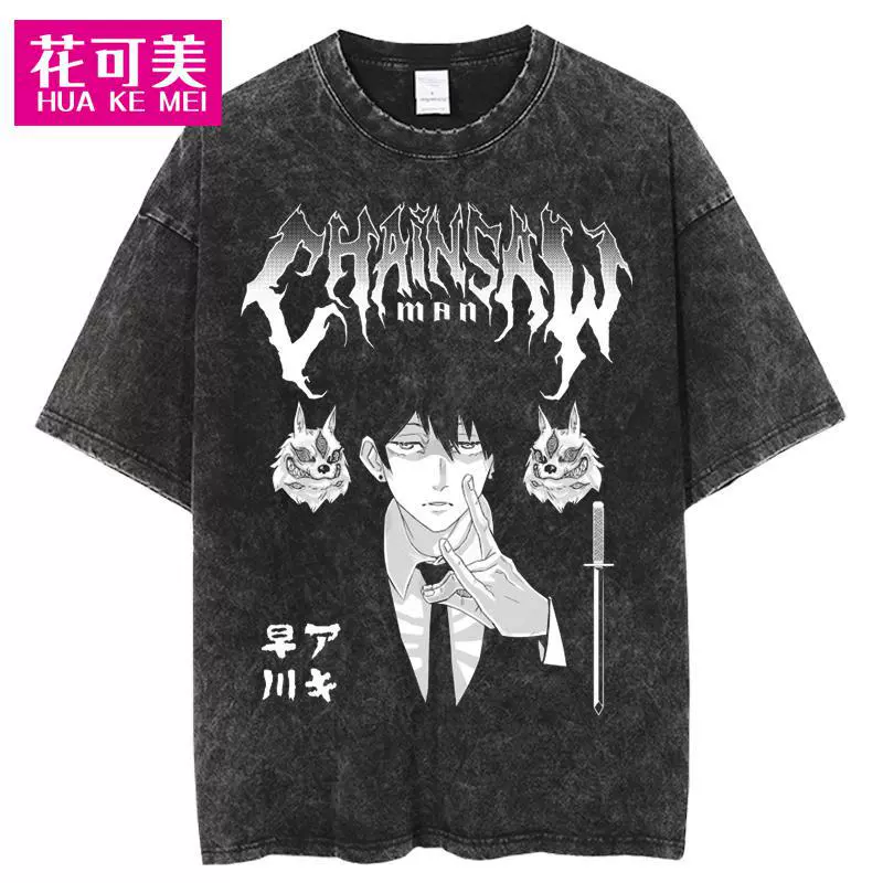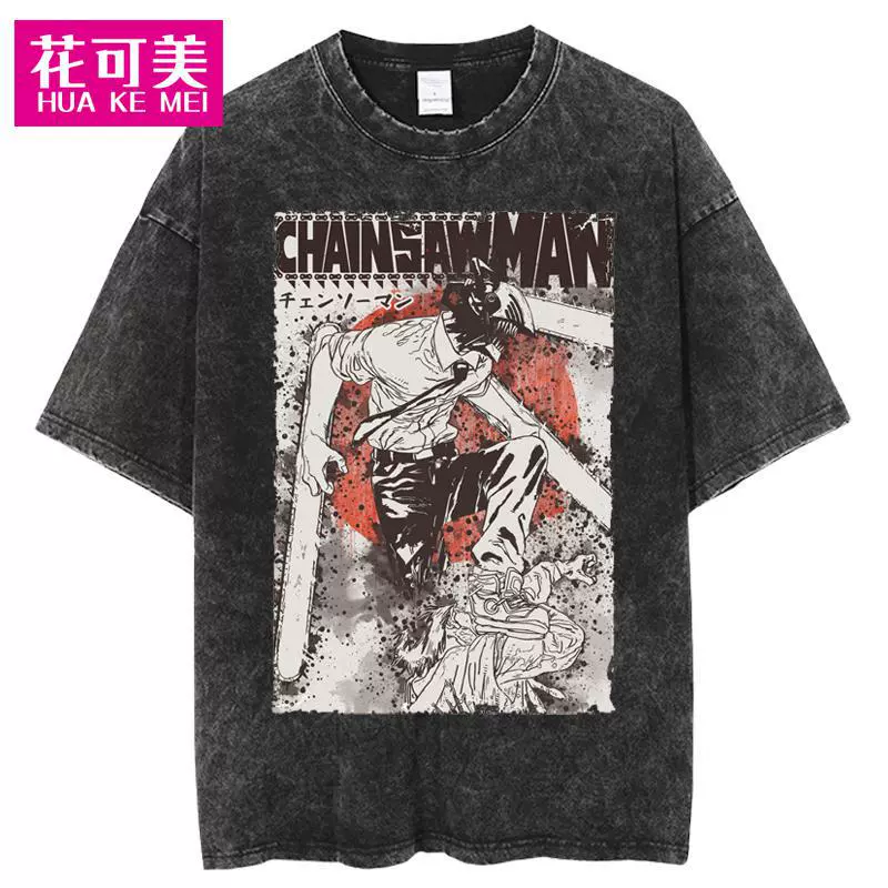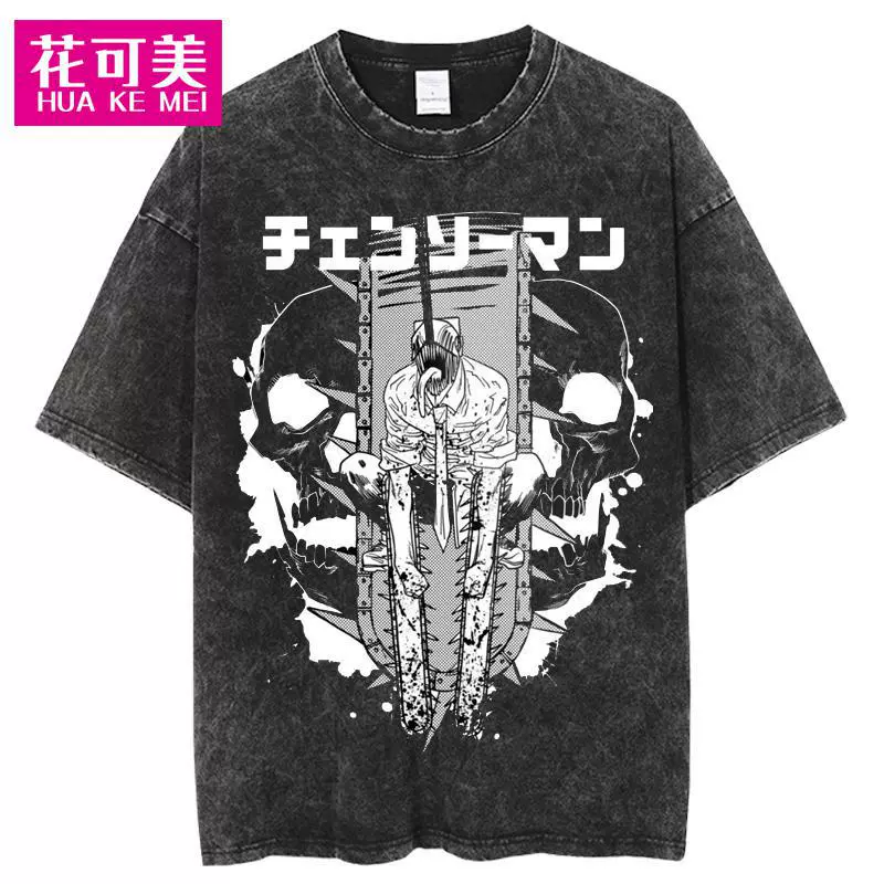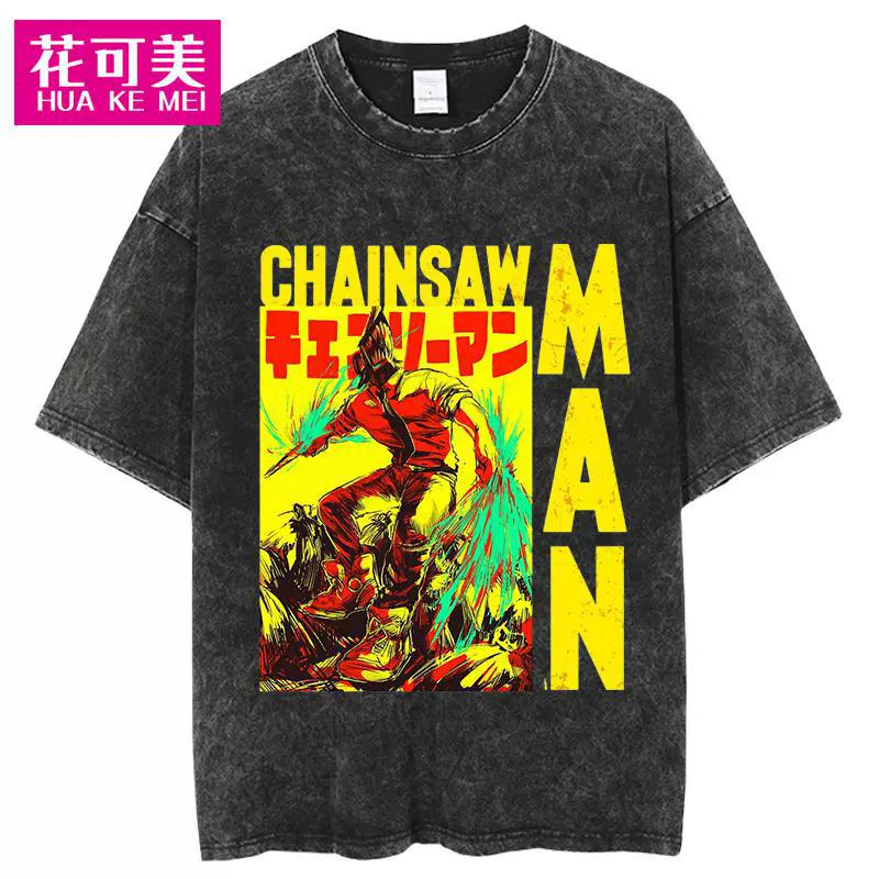 | nameOriginal | Cross-border Chainsaw man men's hip-hop retro washed large anime T-shirt women's street cotton T-shirt |