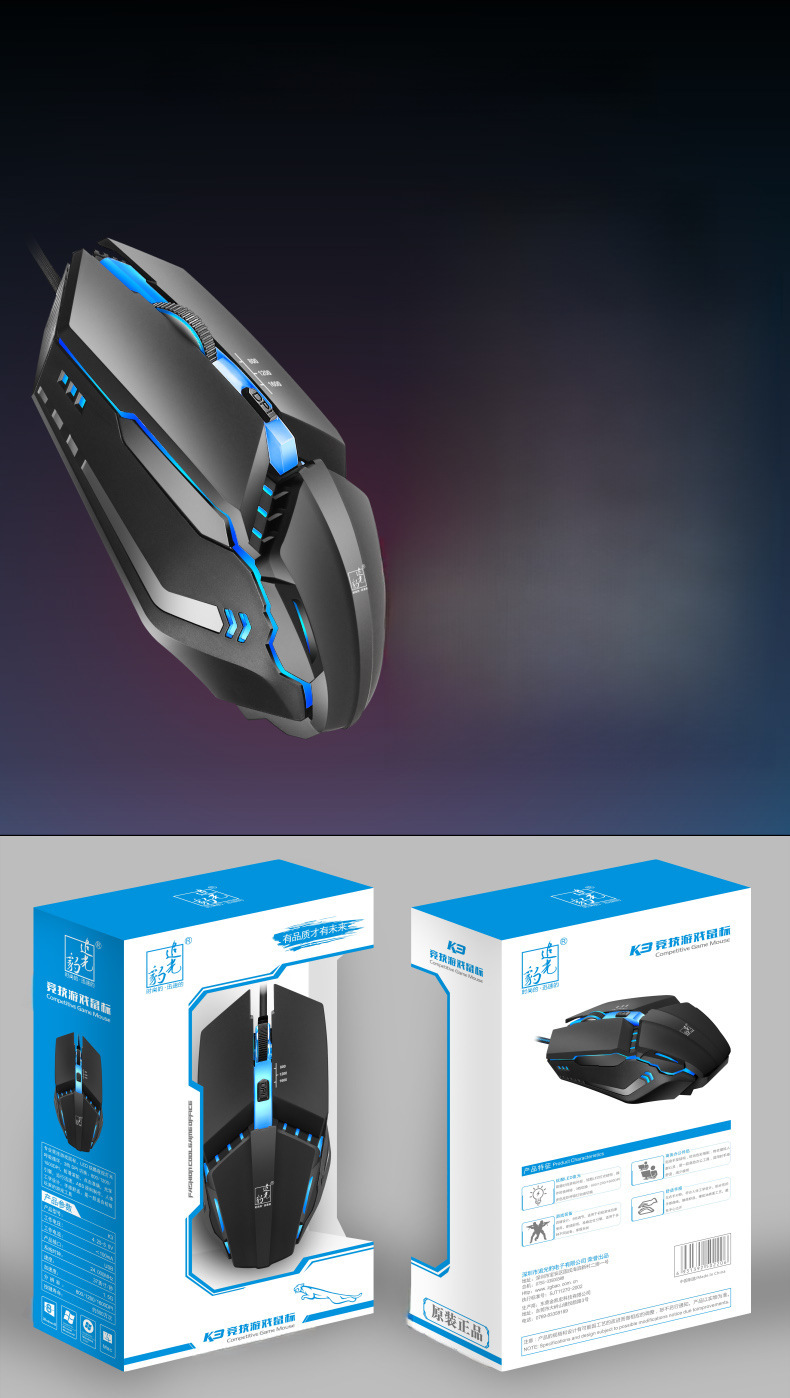 | nameOriginal | Cross-border chasing leopard K3 wired mouse usb luminous computer competitive game Mouse peripheral manufacturer Amazon lol |