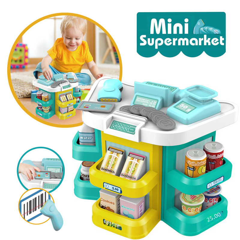 Cross-border children’s luxury simulation supermarket shopping cart combination set can be scanned and swiped card cash register play house toys