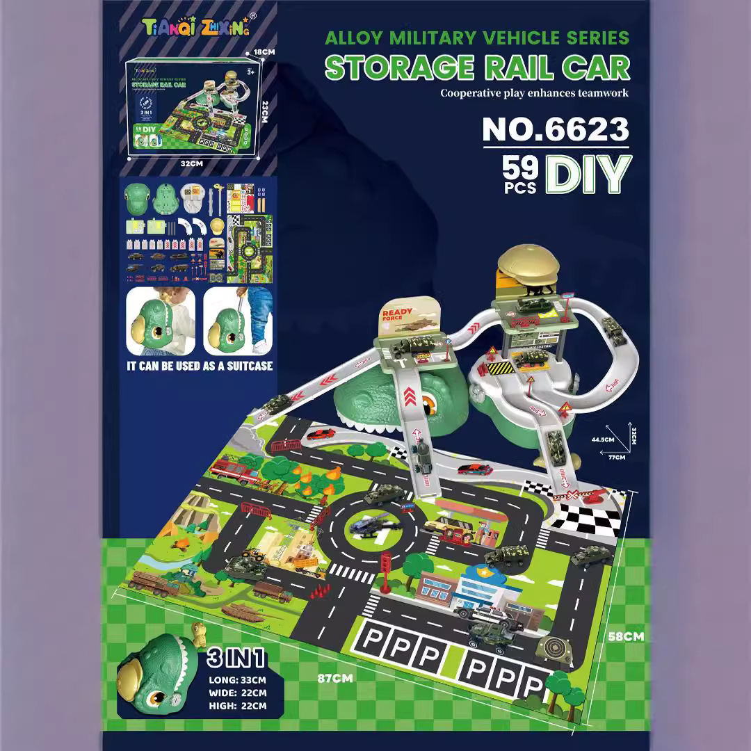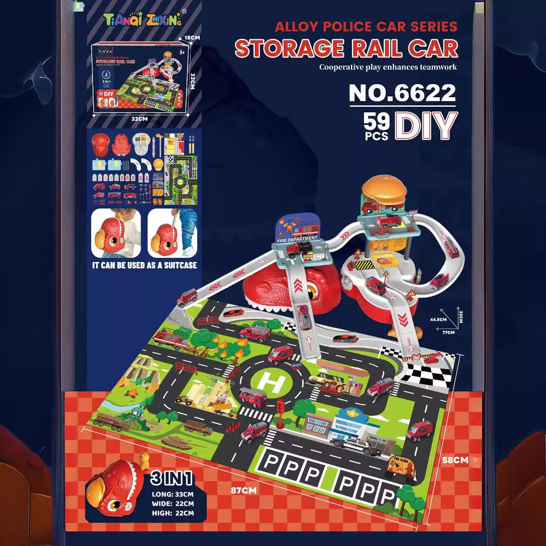 | nameOriginal | Cross-border Children's Play-house Dinosaur Storage Alloy Parking Lot Track Fire Fighting Engineering Military Police Car sports car Toy |