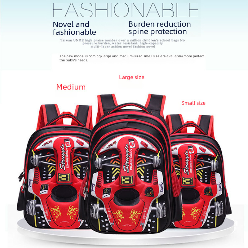 Cross-border children’s schoolbag 3D racing Primary school students three-dimensional kindergarten car cartoon backpack school bag