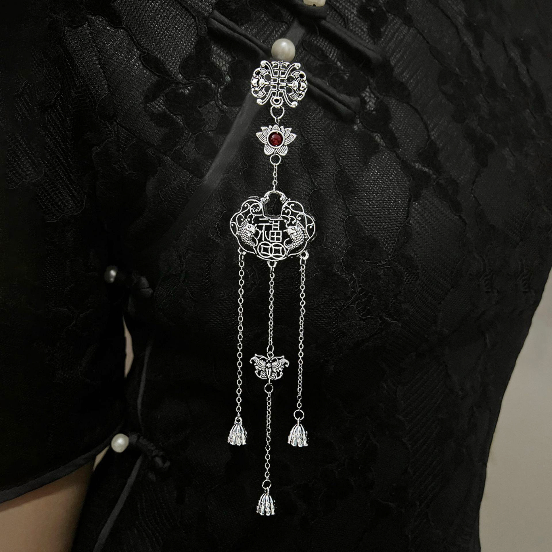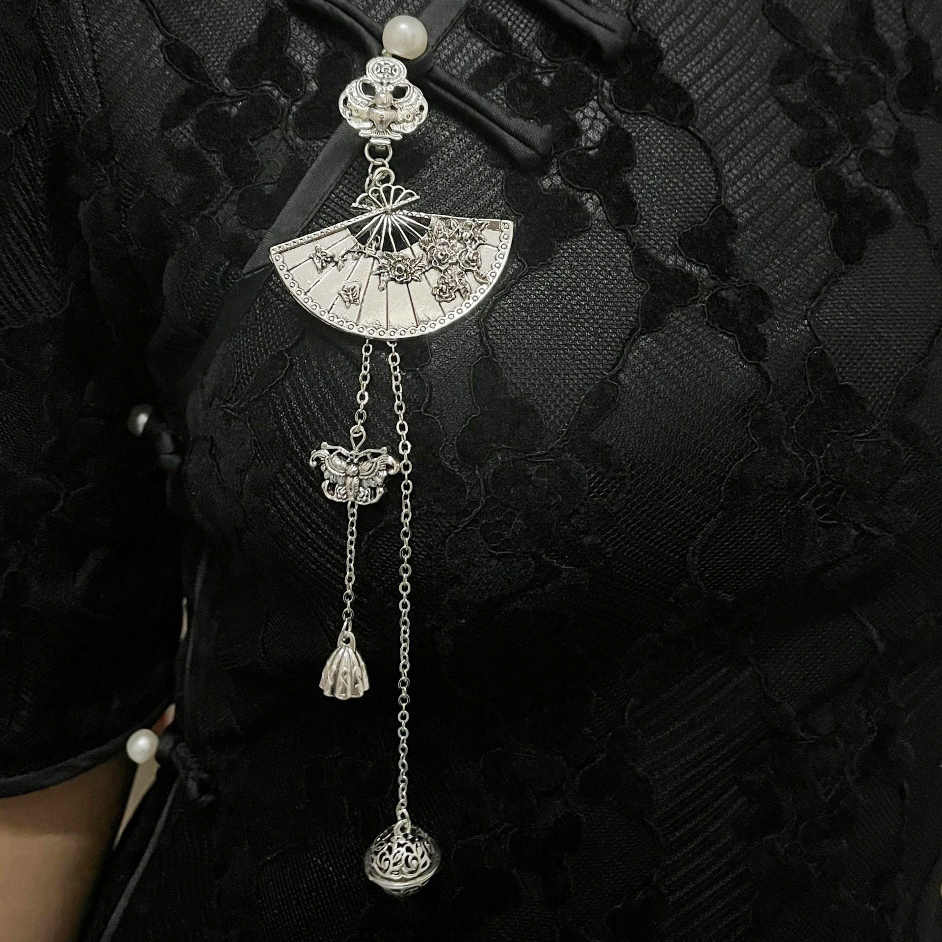 | nameOriginal | Cross-border Chinese style retro plum blossom fan classical tassel brooch new Chinese style ancient style cheongsam pressure button bell hanging |