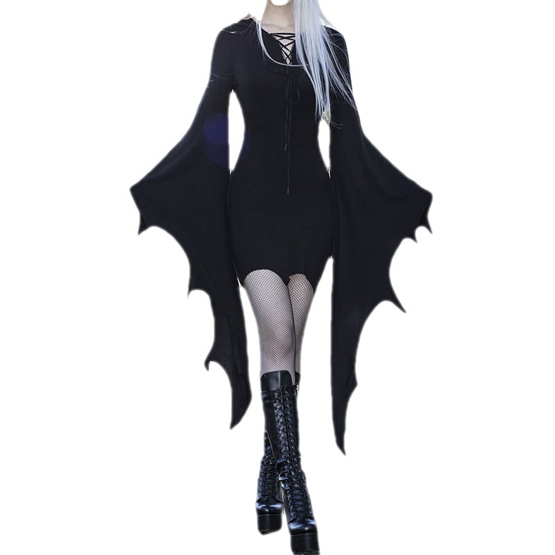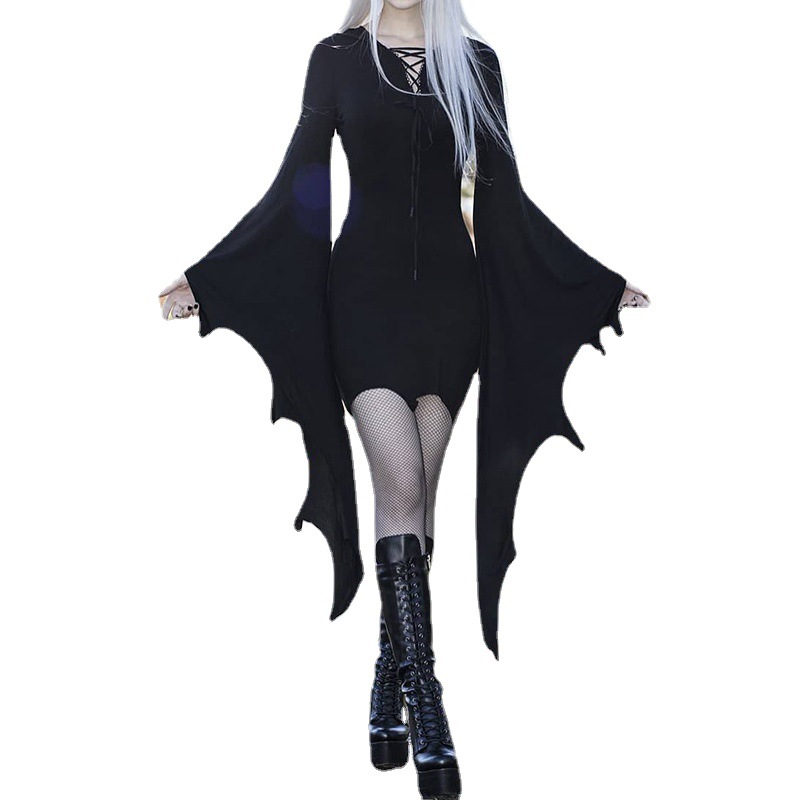 | nameOriginal | Cross-border Christmas Halloween 2022 autumn new cross-border Amazon solid color Wide sleeve strap dress |