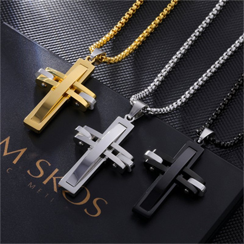 | nameOriginal | Cross-border classic design sense cross pendant retro stainless steel cross-border jewelry multi-piece assembled men's necklace |