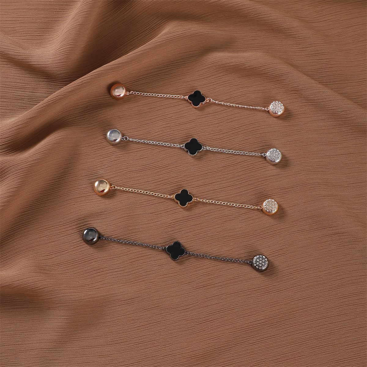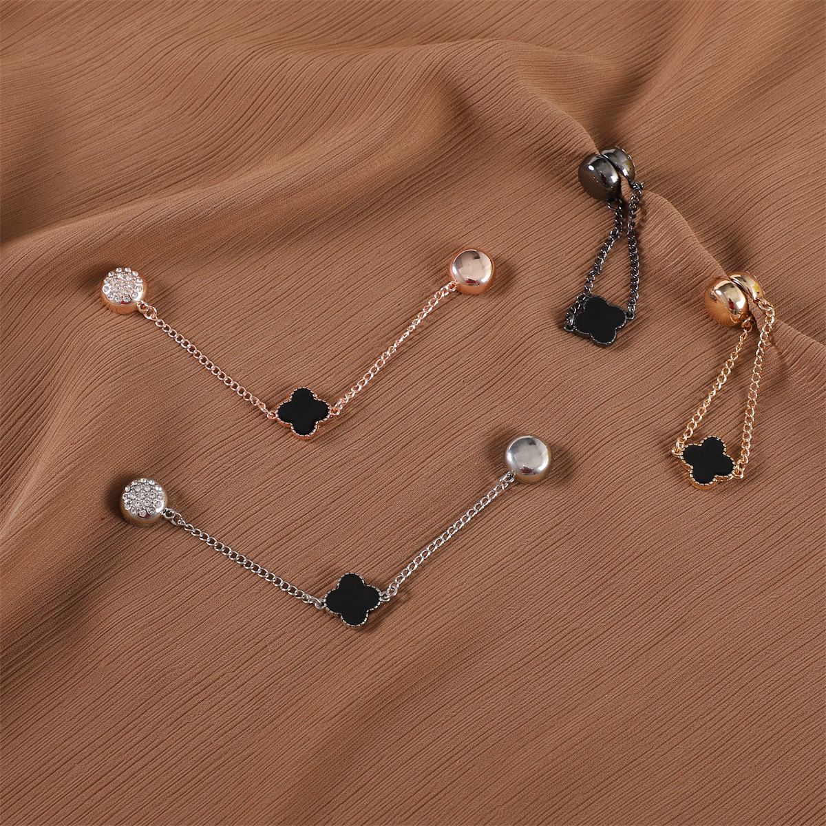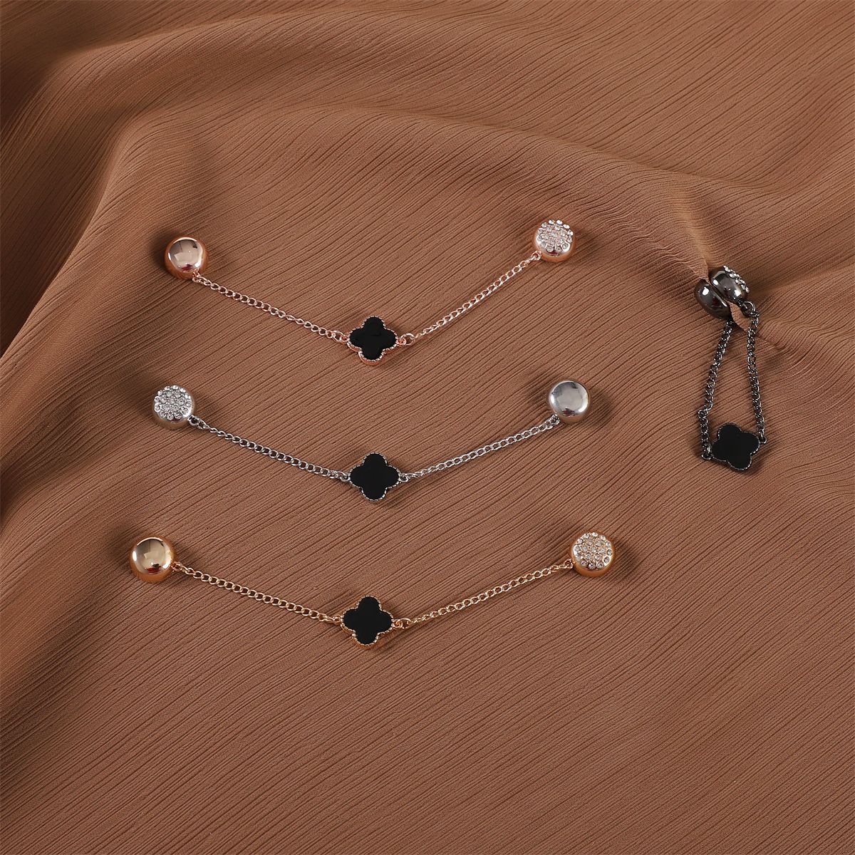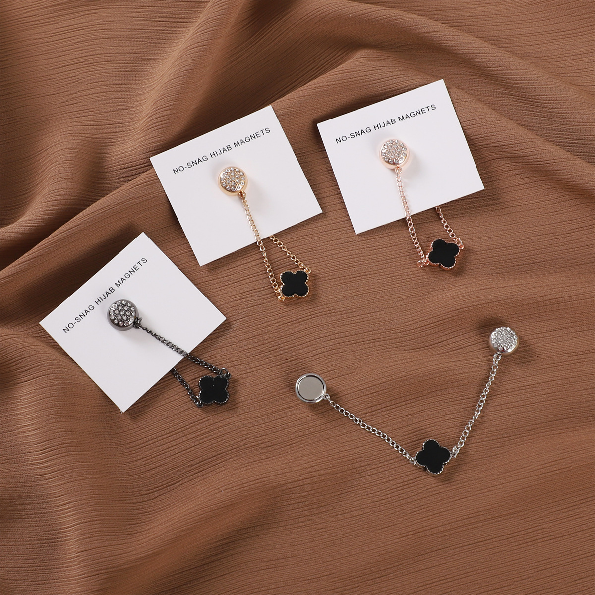 | nameOriginal | Cross-border Clover alloy strong magnetic buckle round unilateral Diamond-embedded chain scarf buckle neck clip scarf shawl fixed buckle |