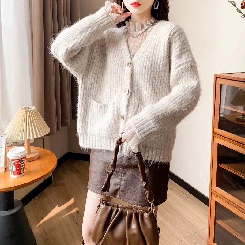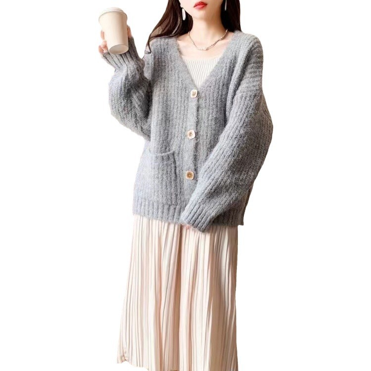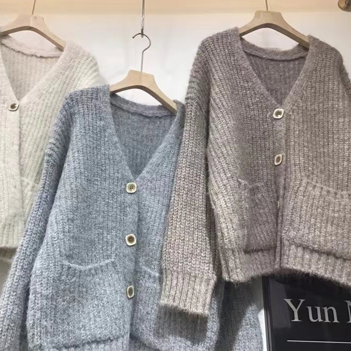 | nameOriginal | Cross-border Coarse Wool V-neck Sweater Coat Women's New Loose Lazy Style Thickened Knitted Cardigan for Autumn and Winter 2024 |
