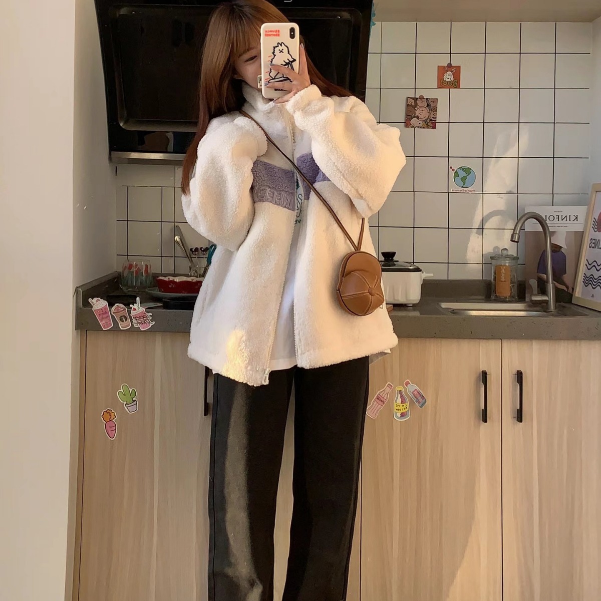 | nameOriginal | Cross-border color matching faux lamb wool zipper lazy sweater women's fleece-lined thickened autumn and winter loose warm coat ins fashion |