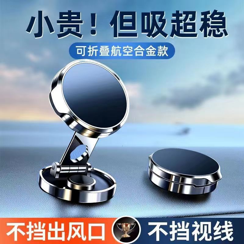 Cross-border creative car magnetic bracket car strong magnetic attraction round 360 folding rotating mobile phone bracket wholesale