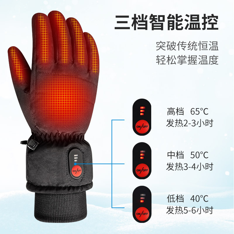 Cross-border Cuff Windproof Electric Heating Gloves Riding Gloves Warm Ski Hiking Heating Mountain Gloves Black