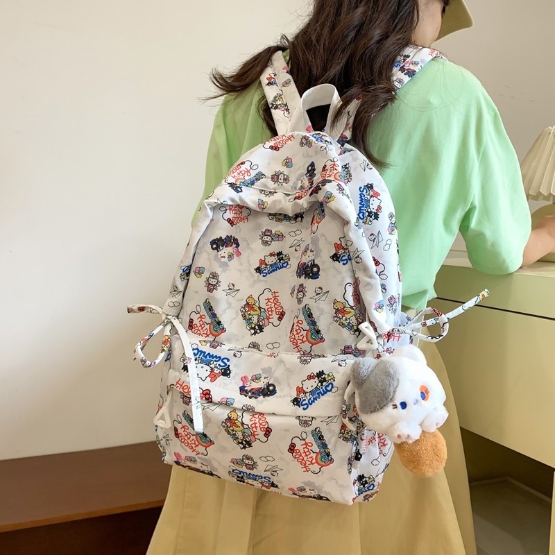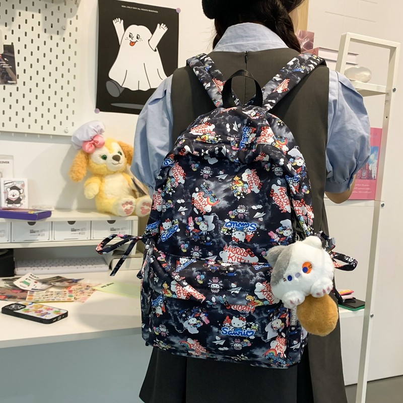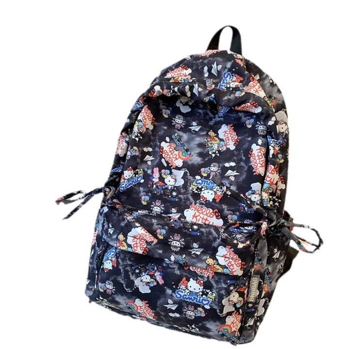 Cross-border Cute Cat Backpack Casual Travel Backpack Junior High School Students Printed Nylon Large Capacity Schoolbag Wholesale