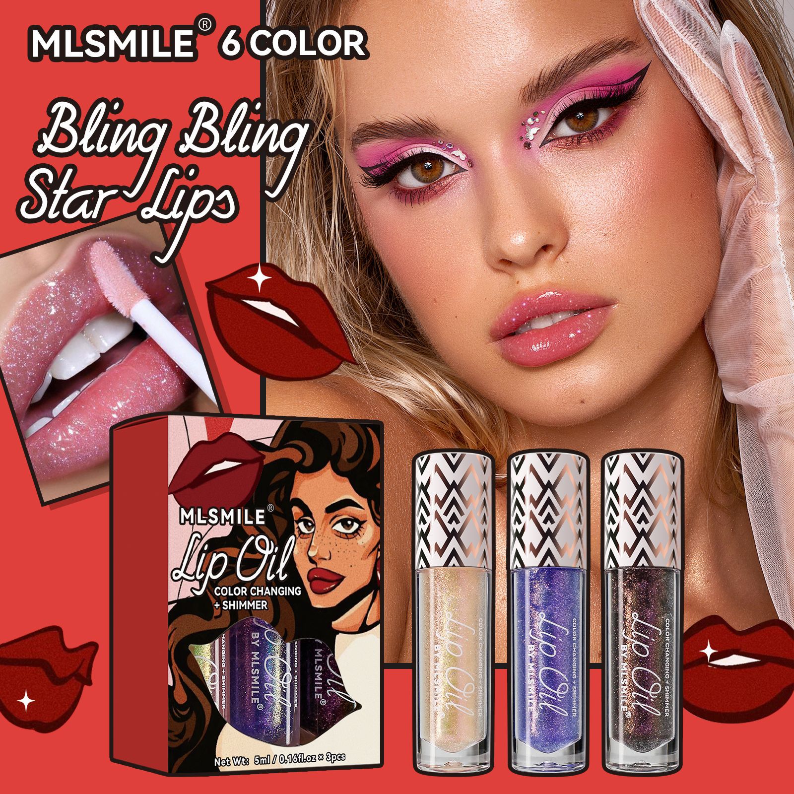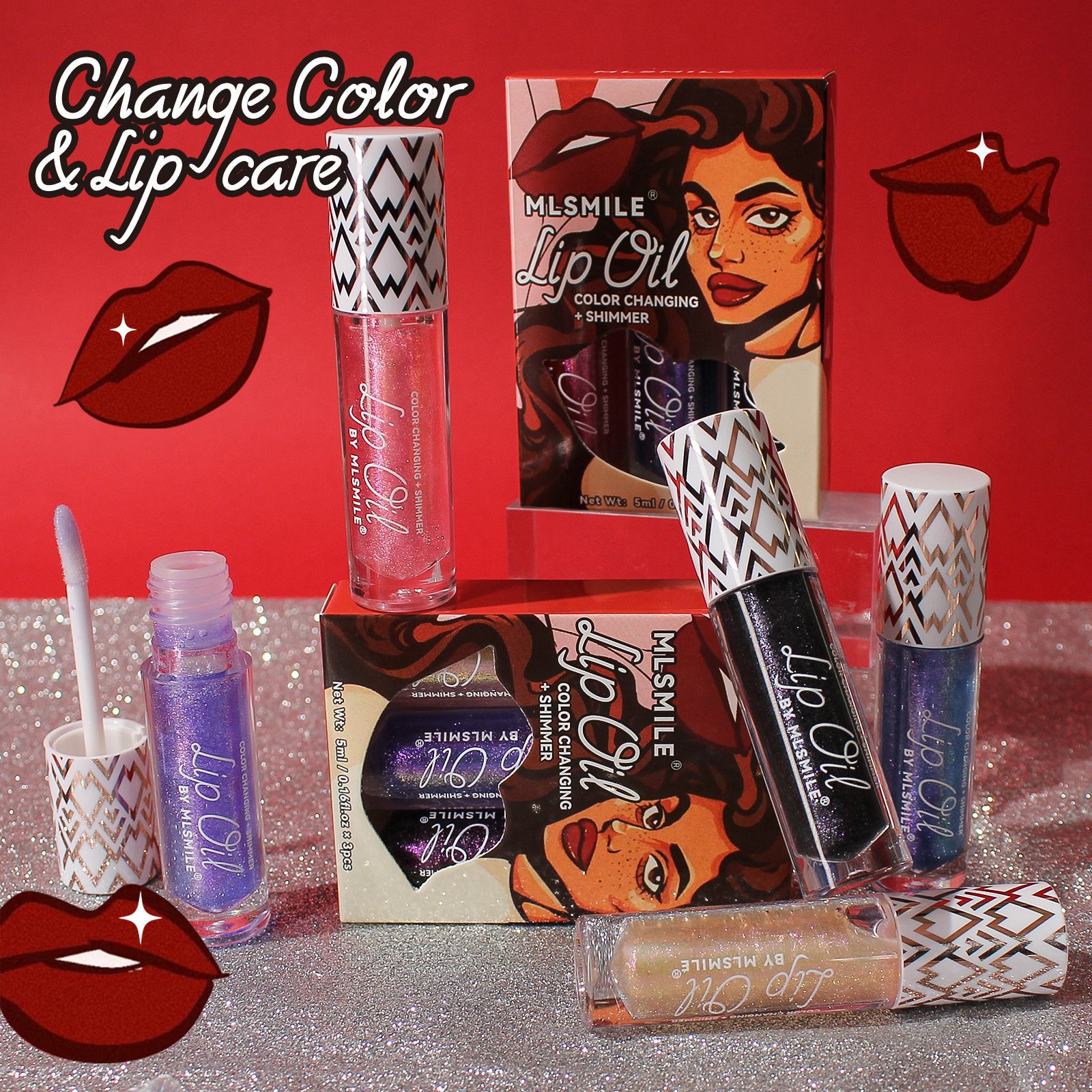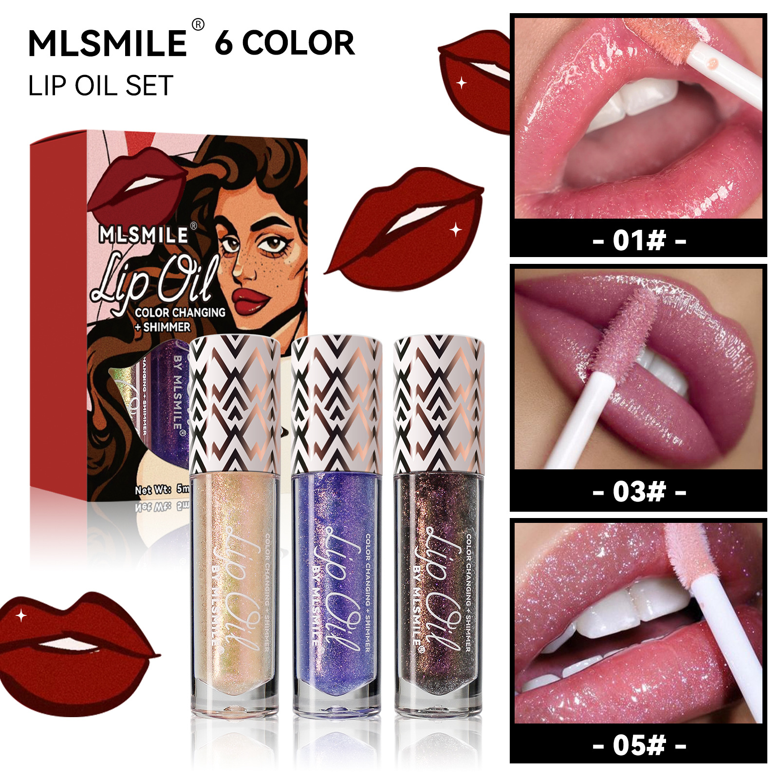 Cross-border dedicated temperature change lip oil suit lip gloss moisturizing moisturizing lip gloss not easy to touch cup color changing lip glaze pearlescent lip glaze