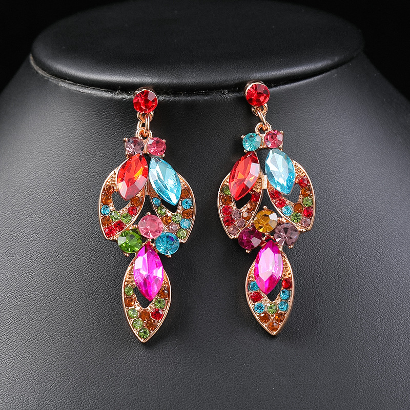 Cross-Border dress jewelry direct sales European and American necklace earrings two-piece set colorful flower bridal retro high-end design sense