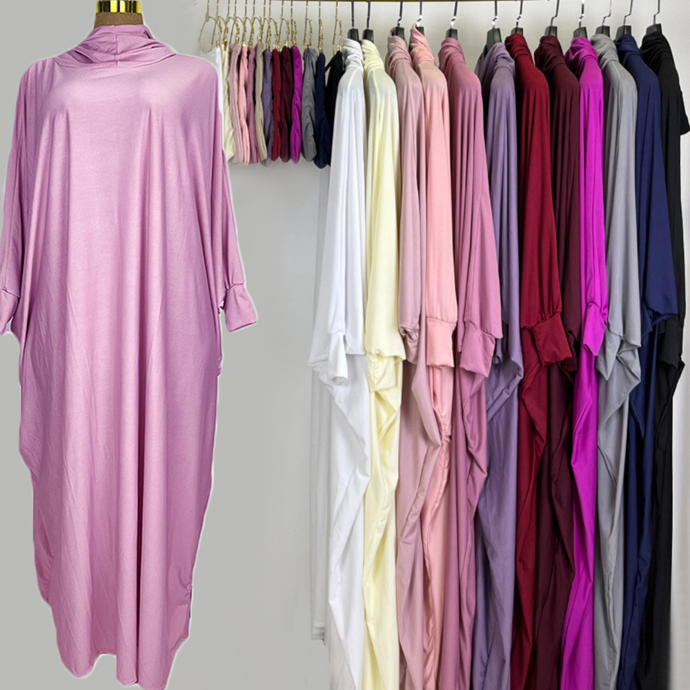 | nameOriginal | Cross-border Dubai Women's clothing solid color hooded with small bag dress milk silk batwing sleeve clothing in stock wholesale |