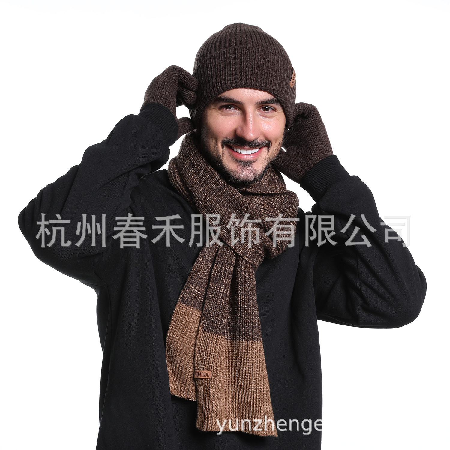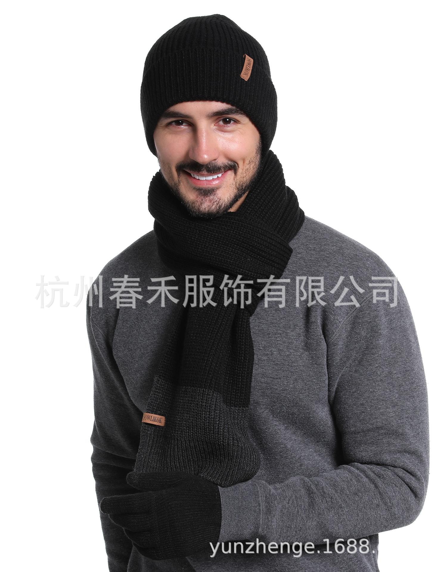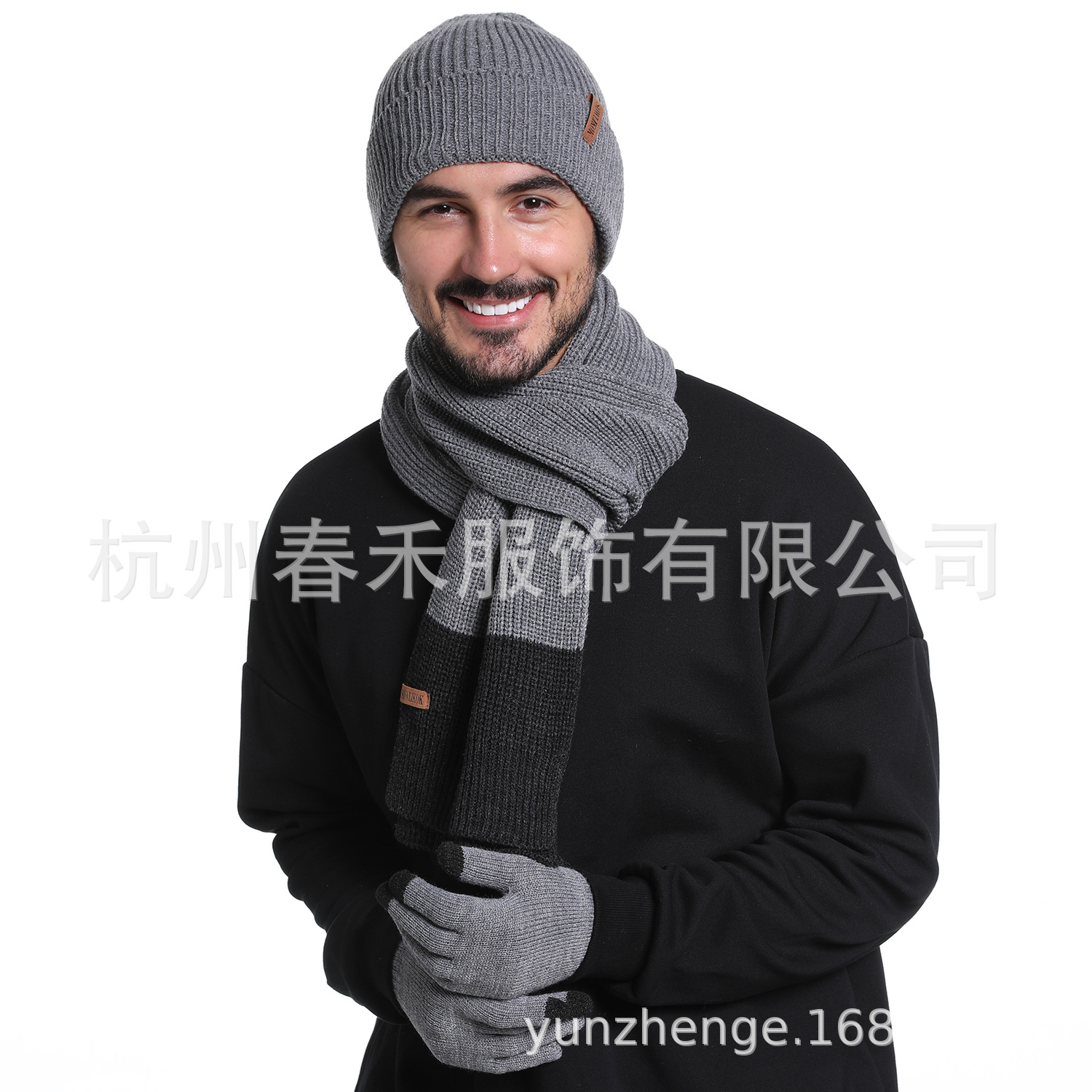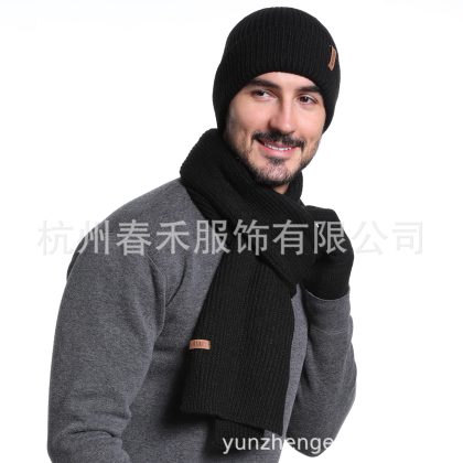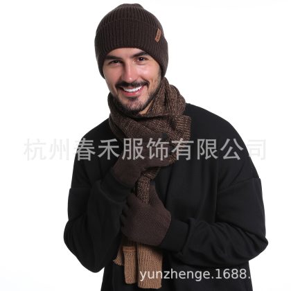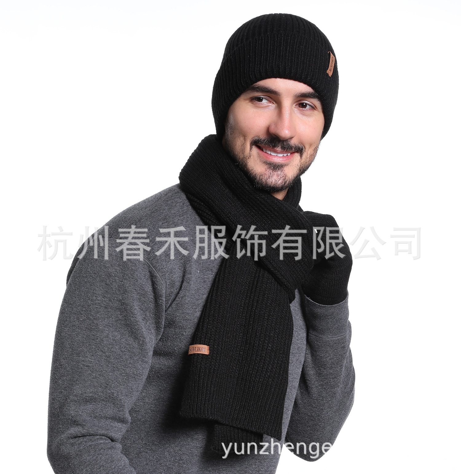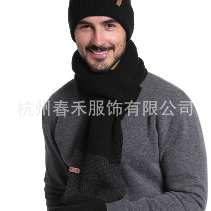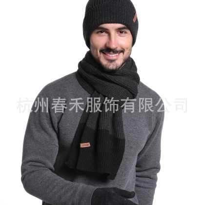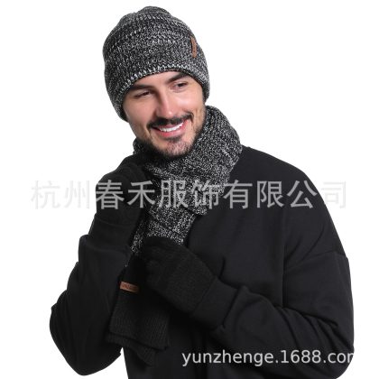 | nameOriginal | Cross-border e-commerce 6-color spot men's adult scarf cap scarf 3-piece set plus velvet scarf hat touch screen gloves |