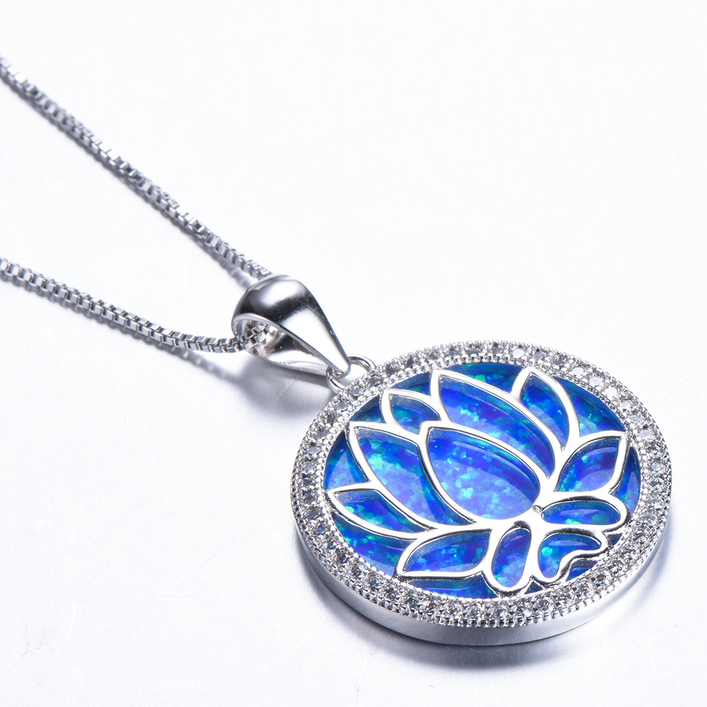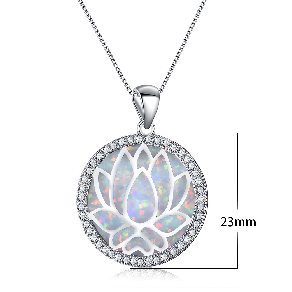 | nameOriginal | Cross-border e-commerce platform s925 sterling silver necklace round Opal + hollow Lotus pendant |