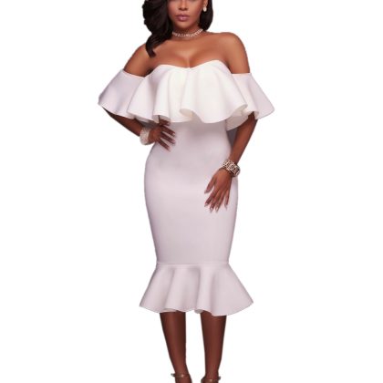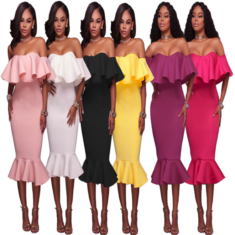 | nameOriginal | Cross-border e-commerce wish Amazon European and American plus size women's clothing popular ruffled sexy off-shoulder autumn clothing dress |