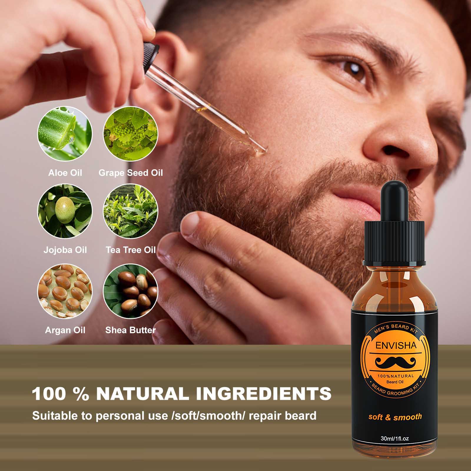| nameOriginal | Cross-border ENVISHA beard 6-piece set of nursing moisturizing smooth beard cream oil all English foreign trade manufacturers wholesale |
