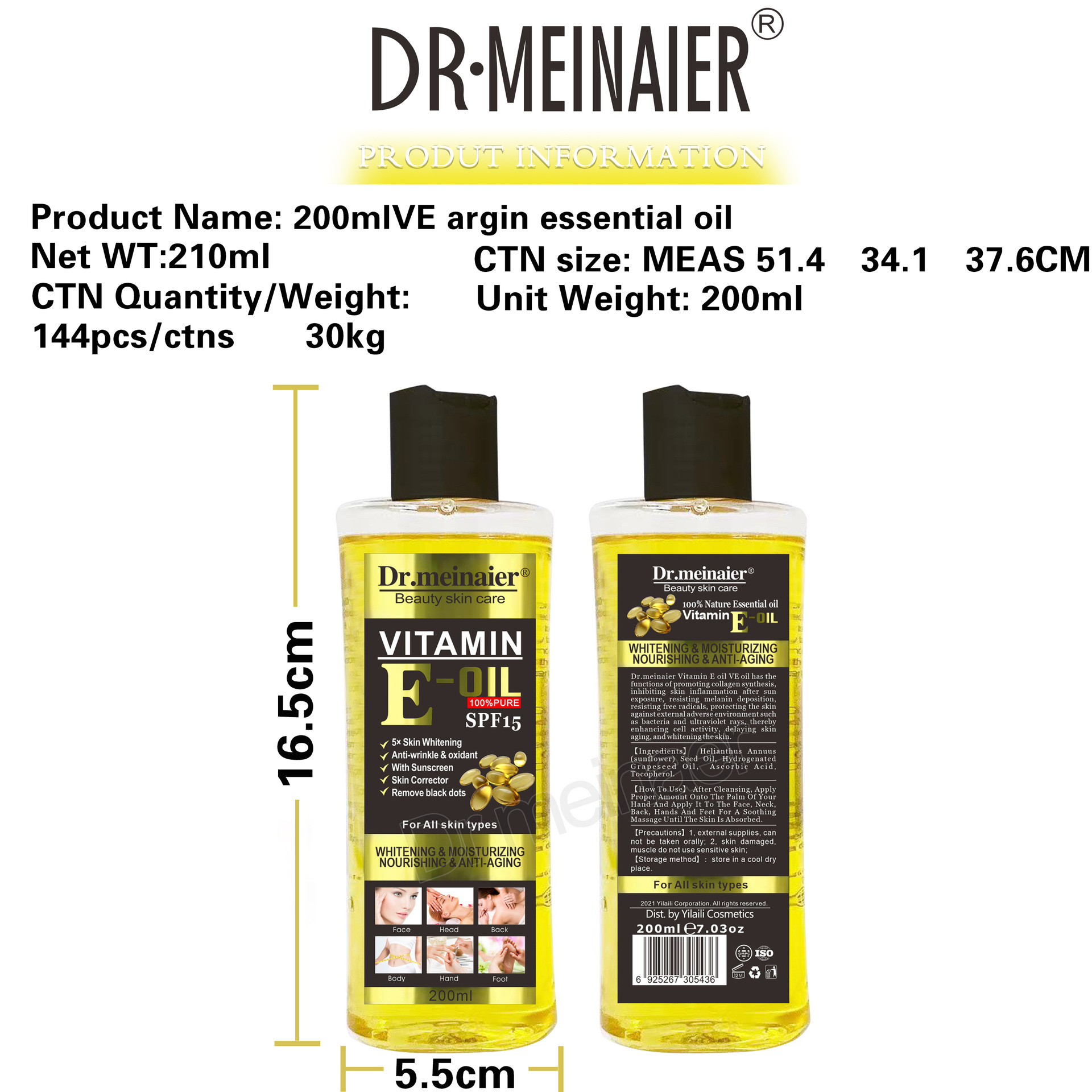 | nameOriginal | Cross-border essential oil foreign trade VC vitamin E oil facial body skin care moisturizing massage blackening natural SPA moisturizing oil |