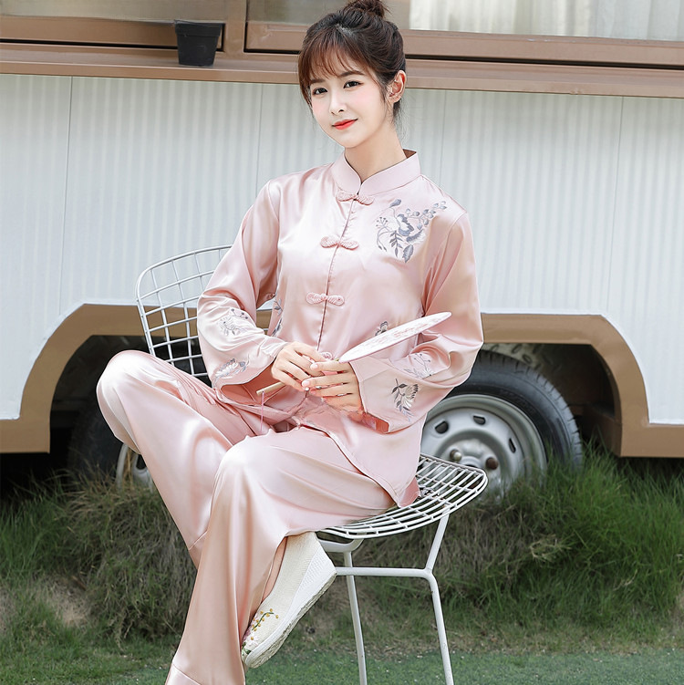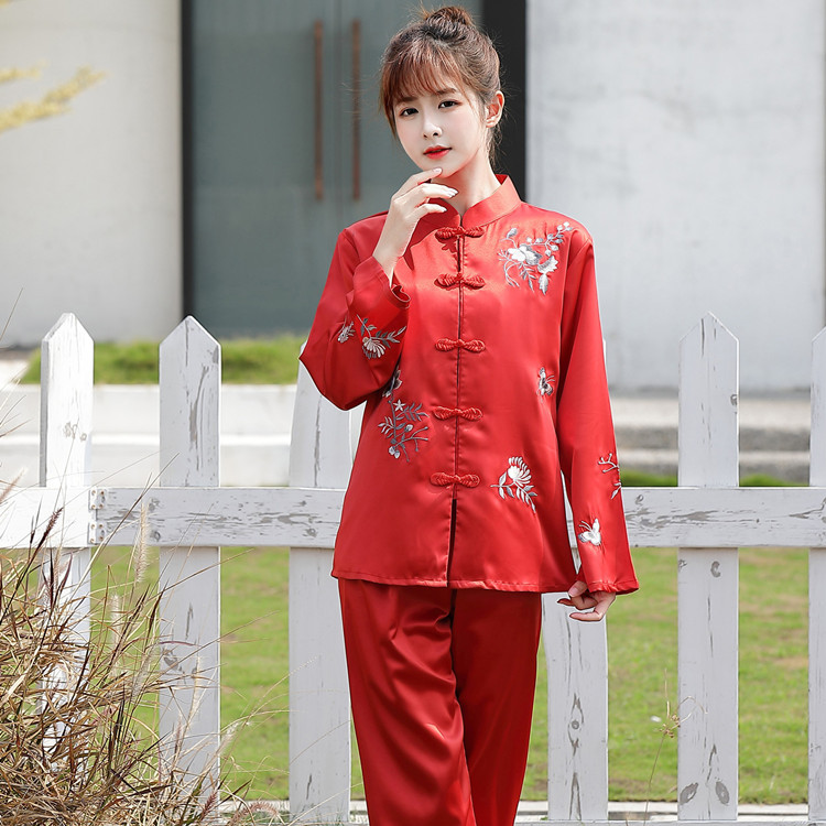 | nameOriginal | Cross-border ethnic style spring and autumn women's artificial silk embroidered stand collar Chinese style buckle Chanel style coat long sleeve two-piece set |