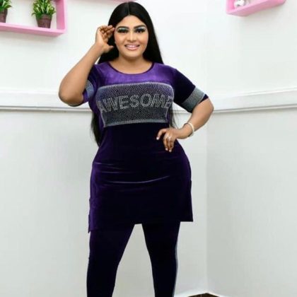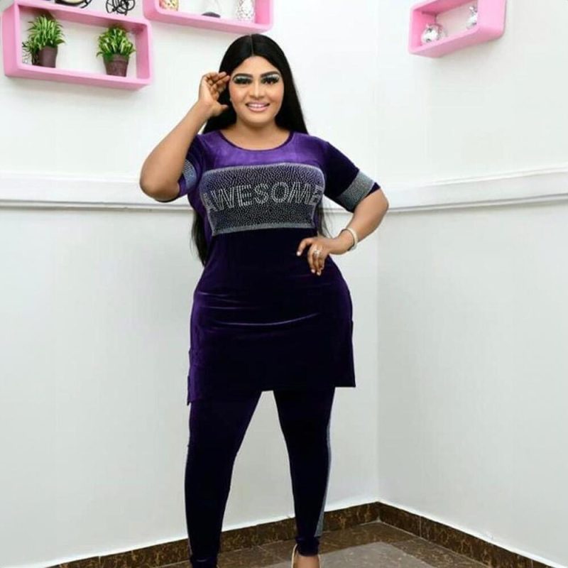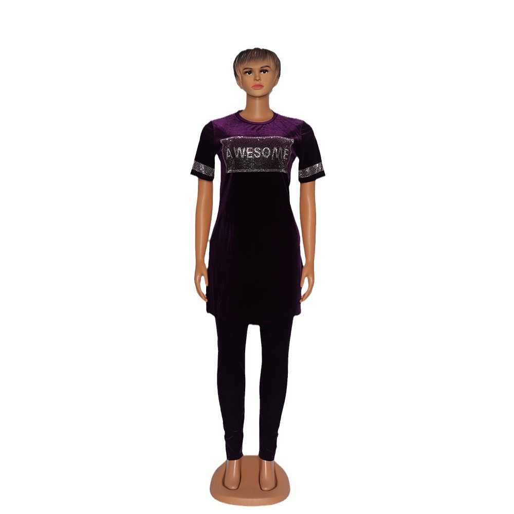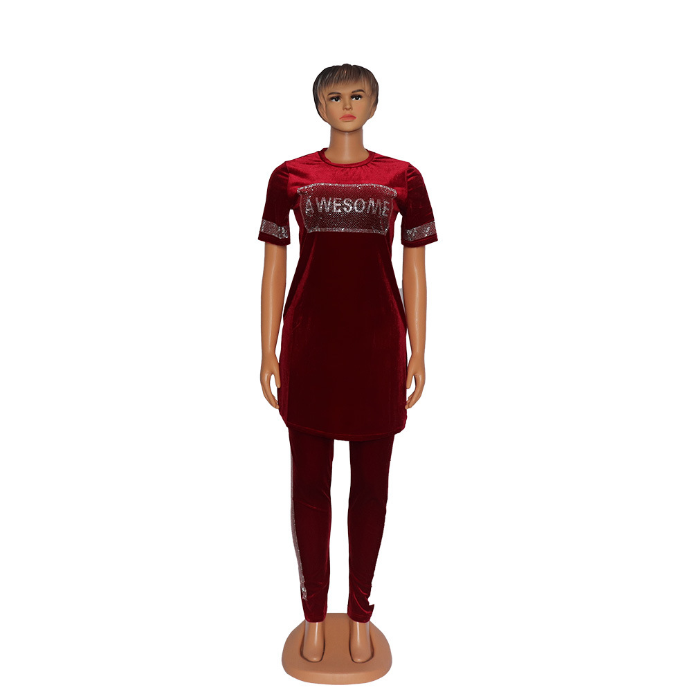 nameOriginal | Cross-border Europe, America and Africa Women's Fashion Casual Suit Gold Velvet Elastic Fabric Hot Drilling Decorative Split Round Neck |