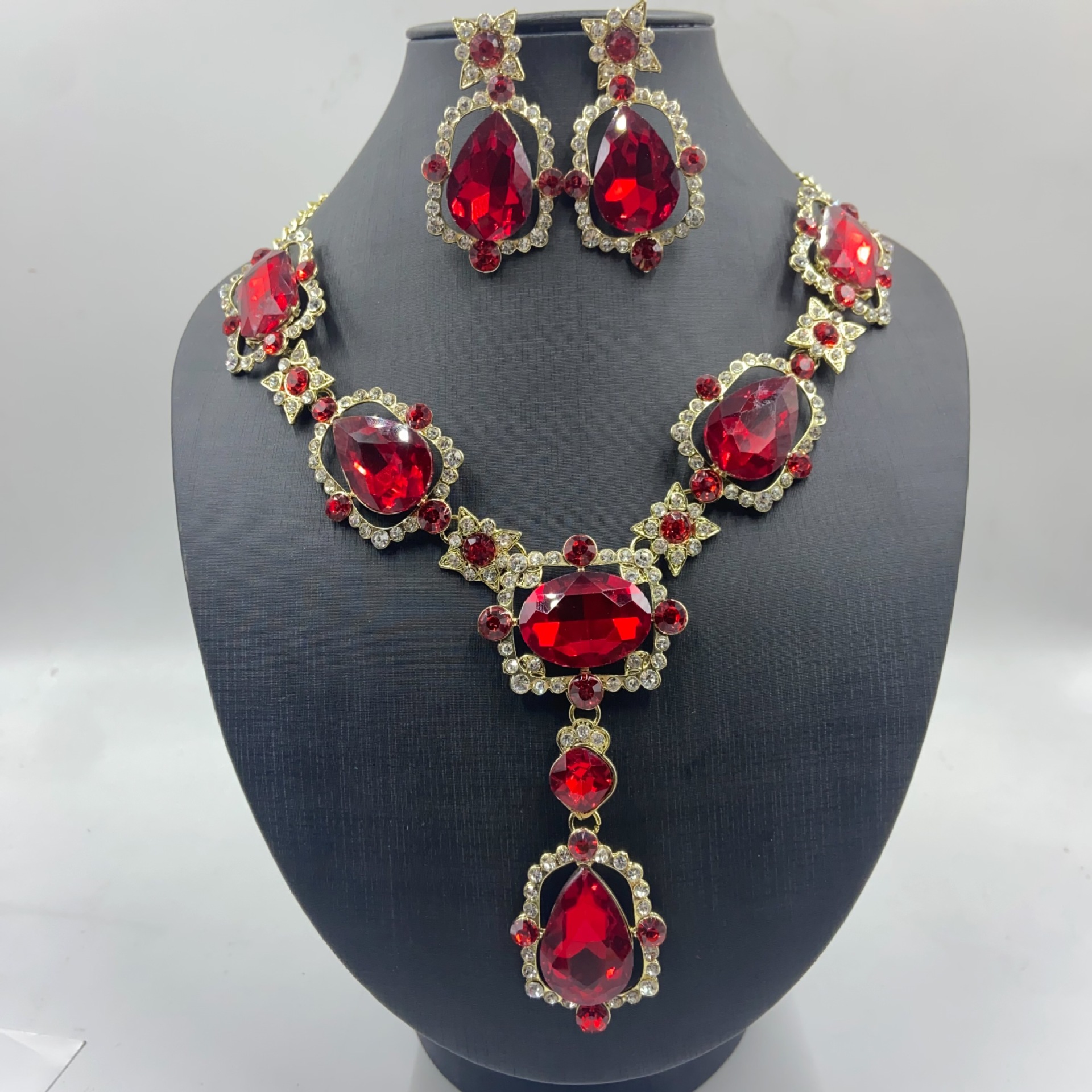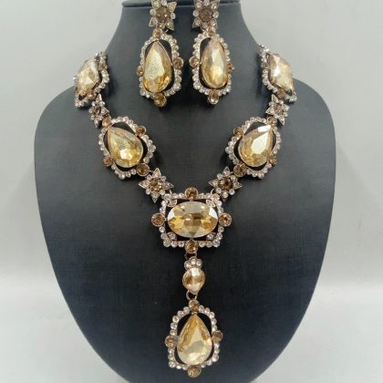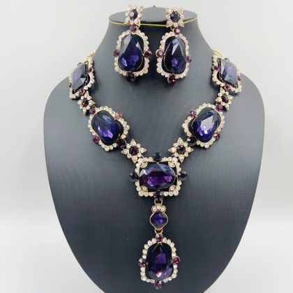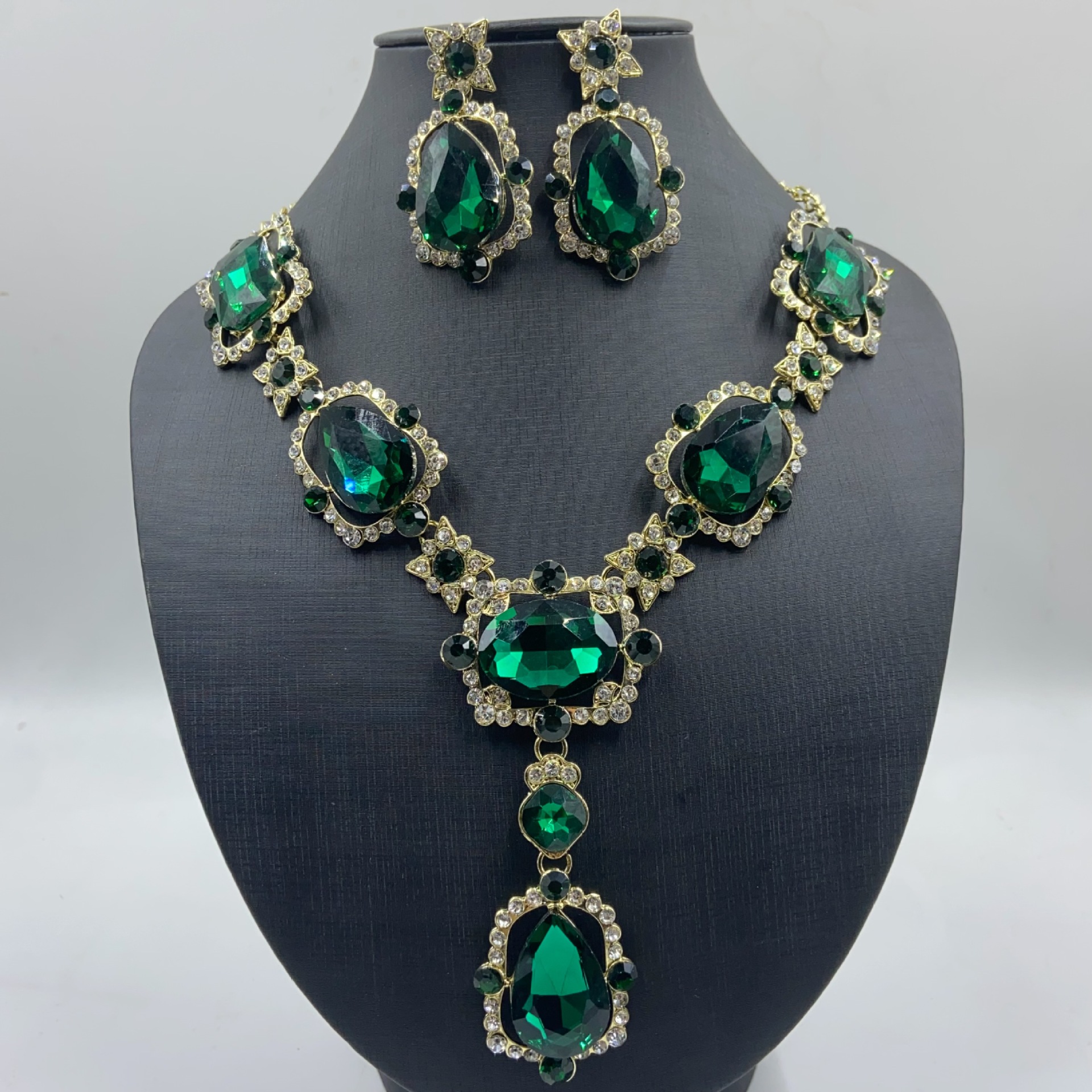 | nameOriginal | Cross-border Europe and the United States exaggerated retro glass crystal clavicle chain temperament popular gem inlaid water drop necklace jewelry set |