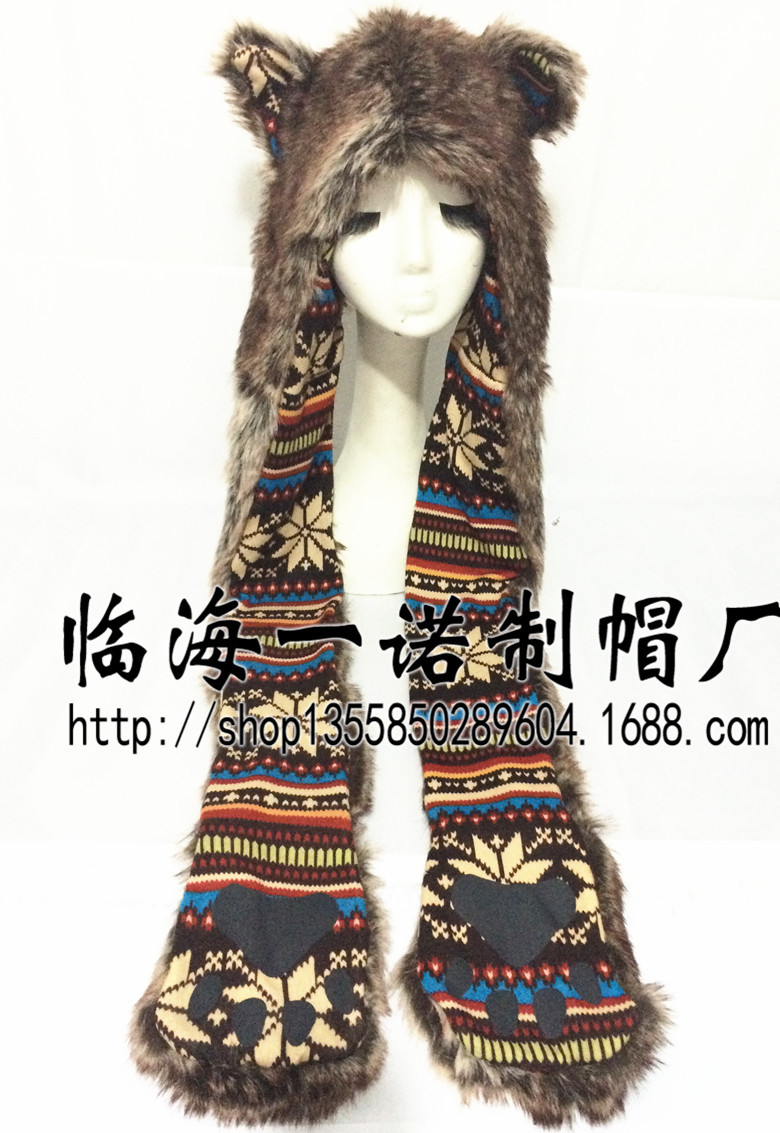| nameOriginal | Cross-border Europe and the United States imitation fur fur hat plush cartoon animal hat hat scarf gloves all-in-one hat |
