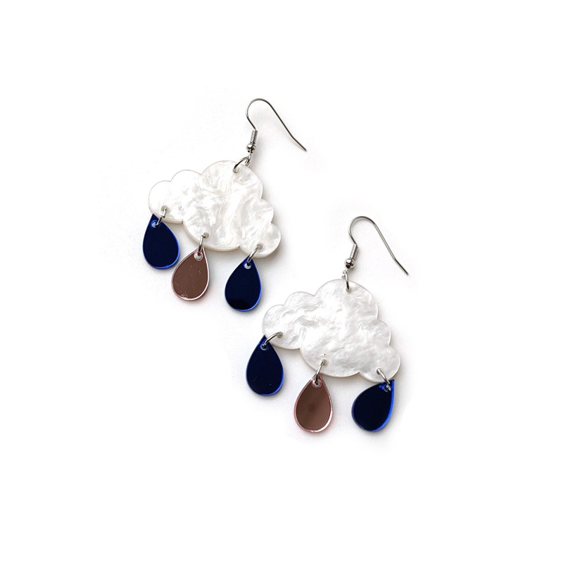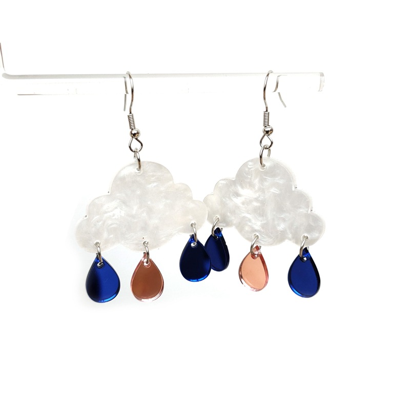 | nameOriginal | Cross-border Europe and the United States personality white clouds acrylic mirror water drop tassel earrings female |