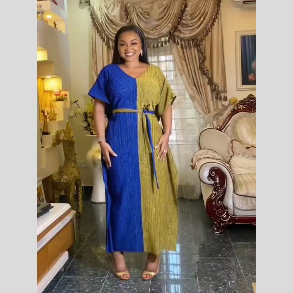 | nameOriginal | Cross-border European, American and African ethnic style Foreign trade wholesale two-color stitching dress dress gilded elastic belt |