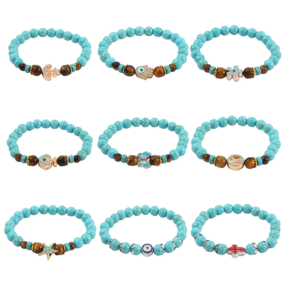 | nameOriginal | Cross-border European and American 8mm Bracelet Set Turquoise Bracelet Cross Natural Stone Beaded Vintage Tiger Eye Bracelet |