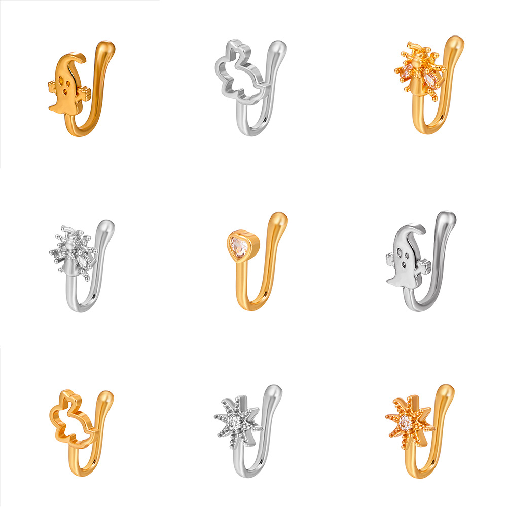 Cross-border European and American Amazon Perforation-free Nose Clip African Vintage Copper Inlaid Zircon U-shaped Nose Nail Adjustable Puncture Ornaments