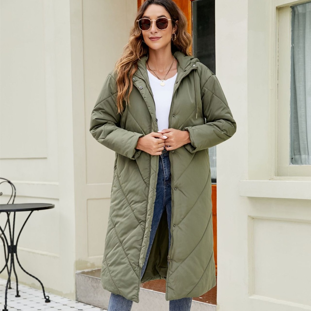 | nameOriginal | Cross-border European and American Amazon Women's Solid Color Hooded Long Cotton Clothes Fashion Plaid Zipper Slim Long Sleeve Jacket |