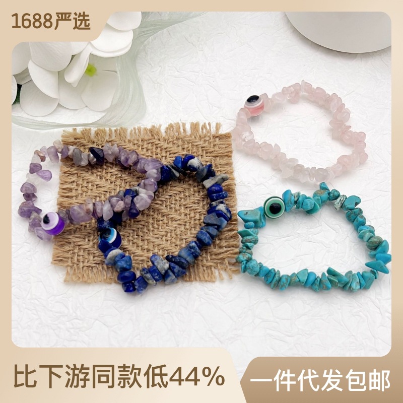 | nameOriginal | Cross-border European and American Blue Eyes Elastic Bracelet Evil Eye Bracelet Natural Irregular Crystal Gravel Simple Bracelet |