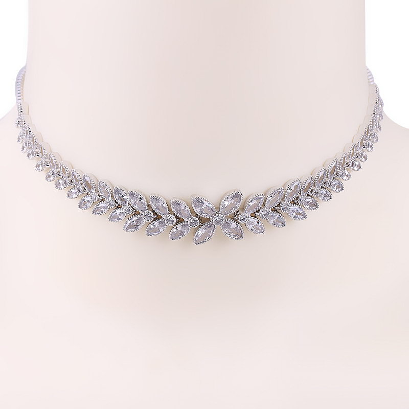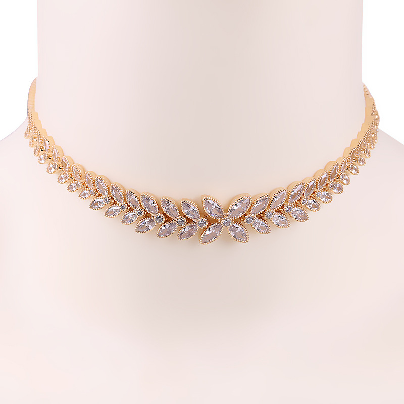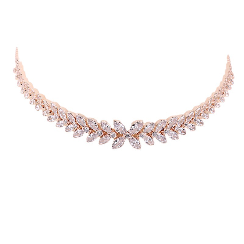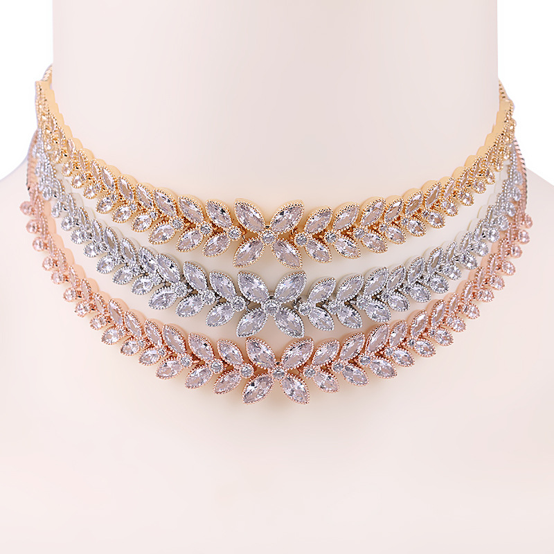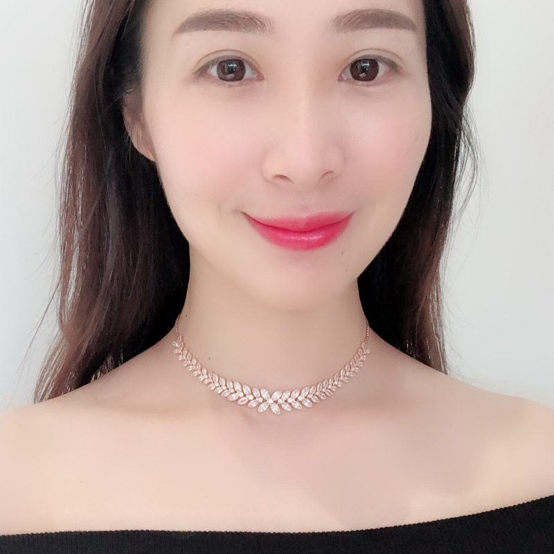 Cross-border European and American Copper Zircon Necklace Bride Bridesmaid Simple Necklace Banquet Joker Accessories Spot Factory