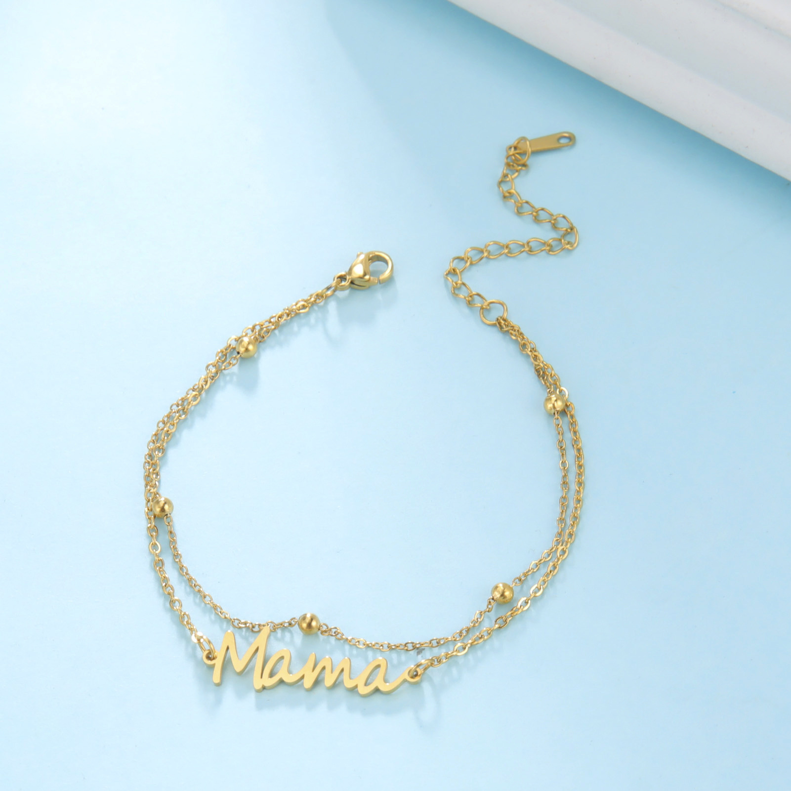 | nameOriginal | Cross-border European and American Explosions Fashion Temperament 18K Gold Stainless Steel Mama Letter Ankle Chain Ankle Chain Mother's Day Gift |
