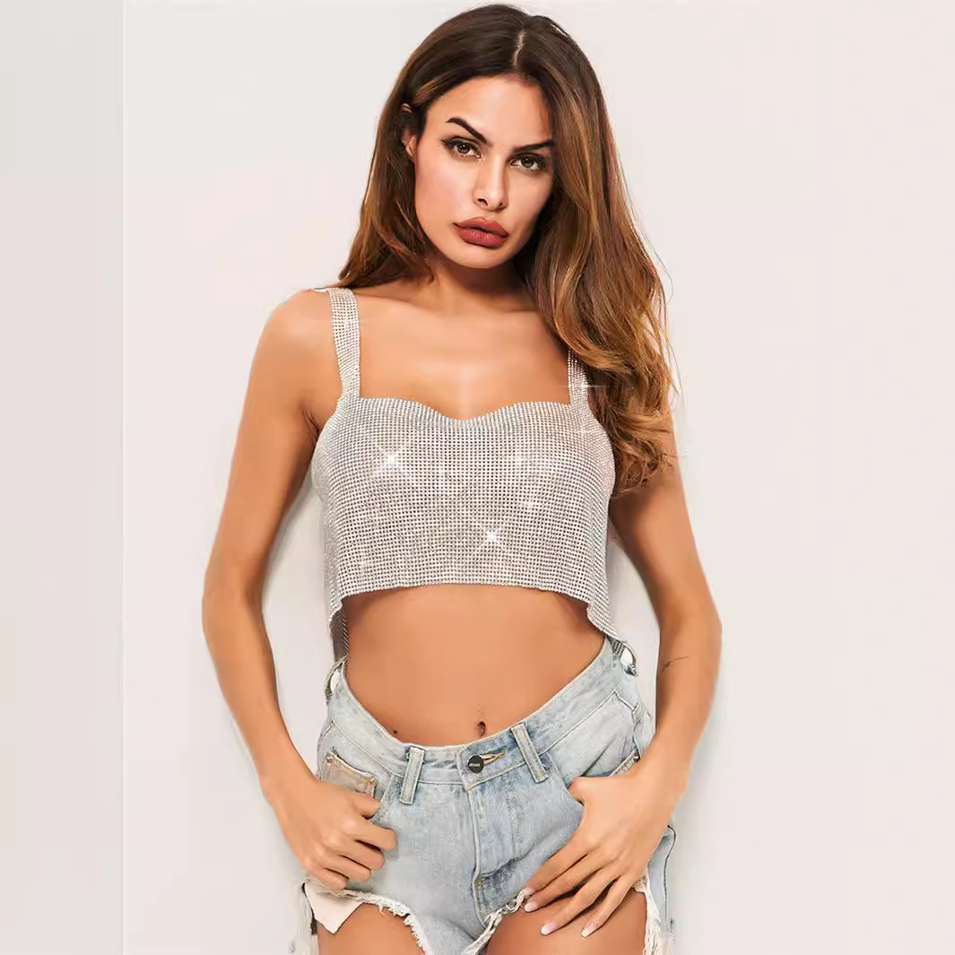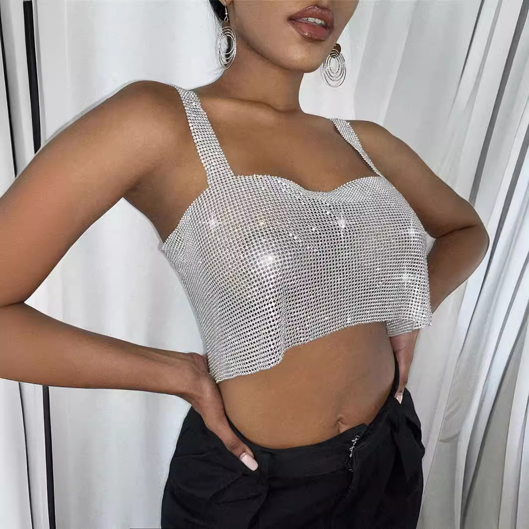 Cross-border European and American Explosions Metal Rhinestone Vest Women’s Nightclub Jacket Diamond-encrusted Chain Sling Strapless Sequin Vest