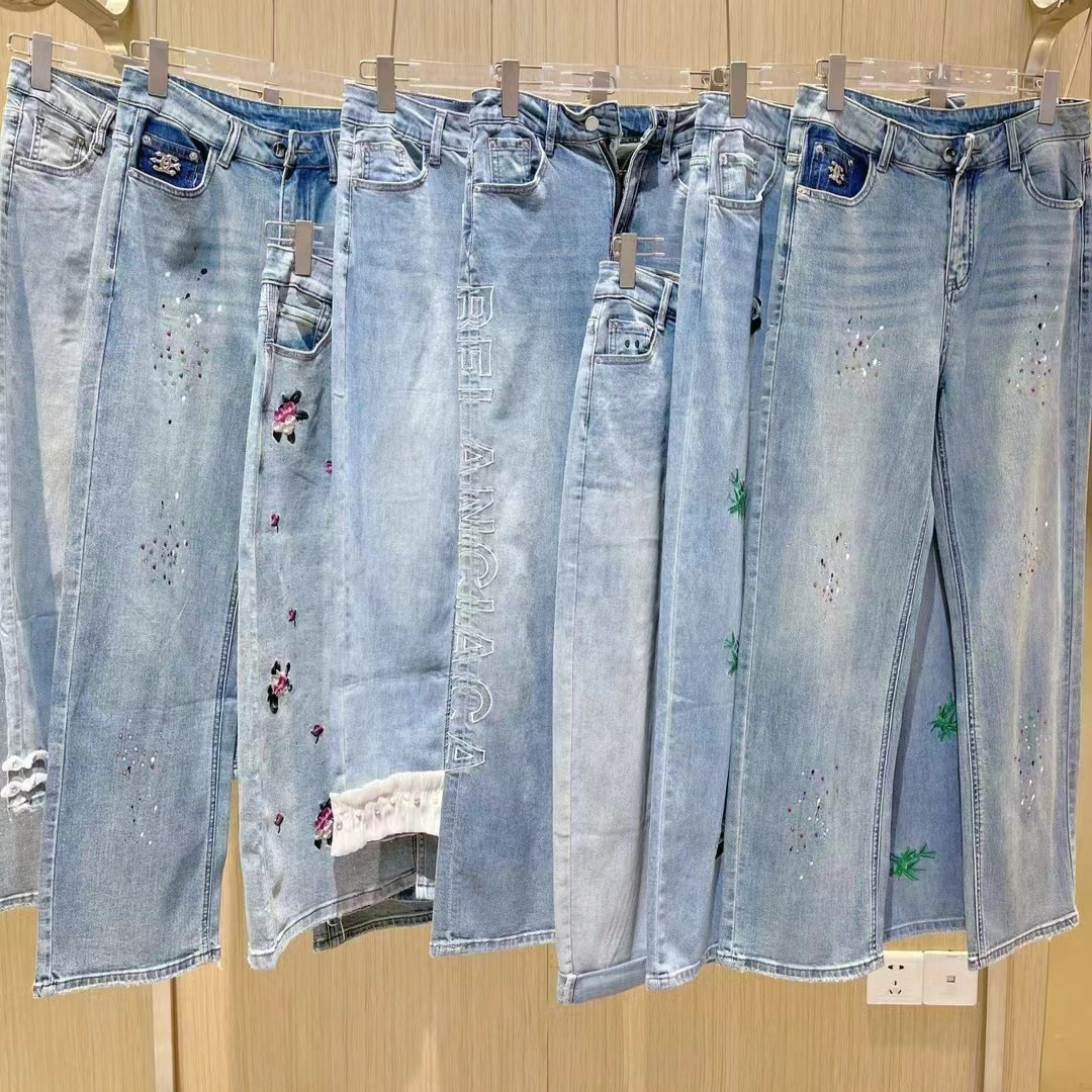 Cross-border European and American export cabinet miscellaneous tail goods women’s Denim trousers inventory cheap clothing wholesale jeans