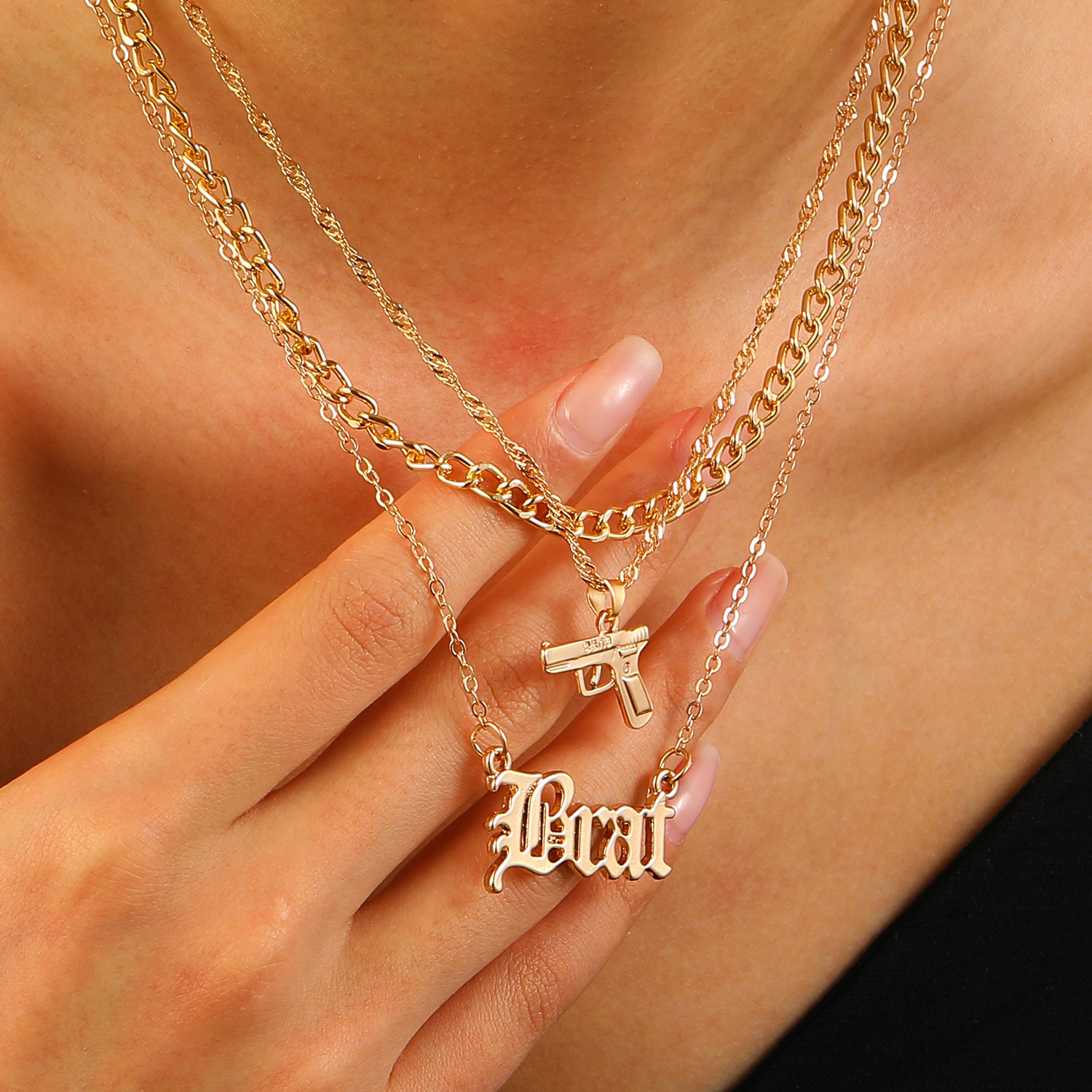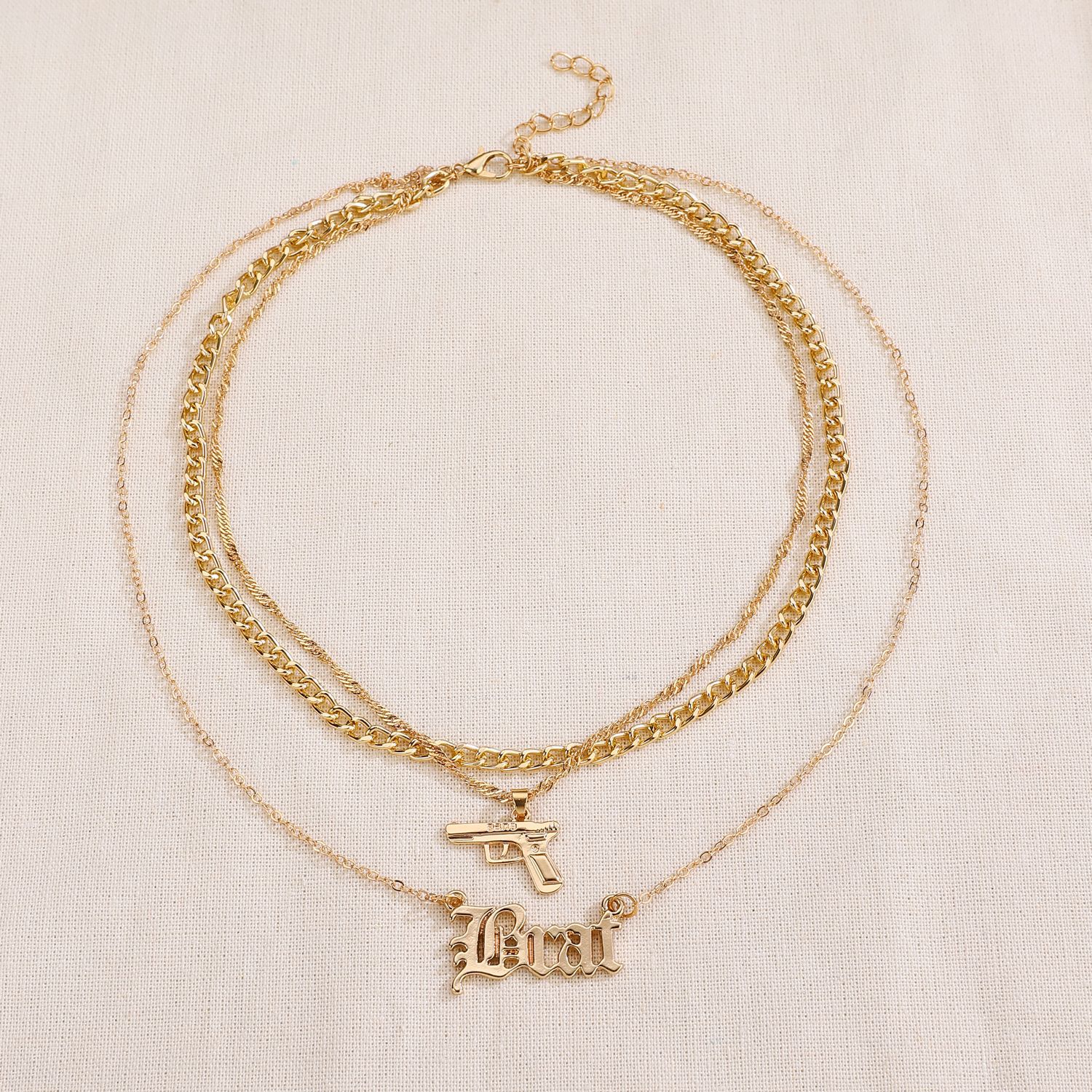 | nameOriginal | Cross-border European and American fashion shape letter double pendant personality hip-hop hip-hop alloy necklace factory outlet |