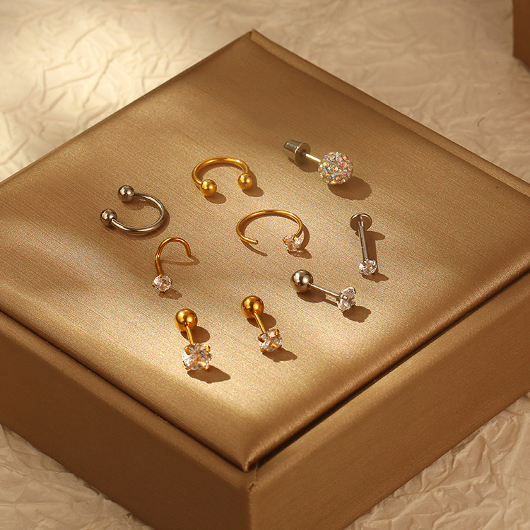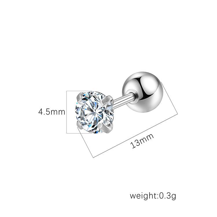 | nameOriginal | Cross-border European and American fashion stainless steel piercing nose ring round inlaid zircon ear bone nail women's trendy four-claw ear nail |