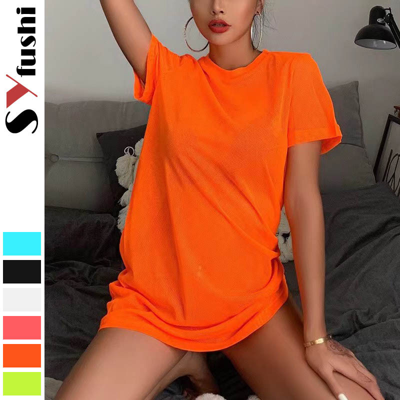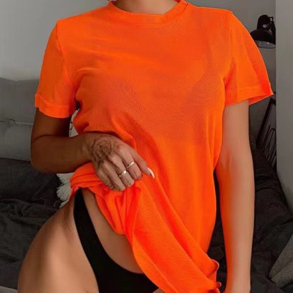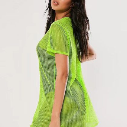 | nameOriginal | Cross-border European and American Fashion Summer Women's Sexy Hollow Four Corner Grid Hot Girl Fluorescent Base Shirt Top T-shirt |